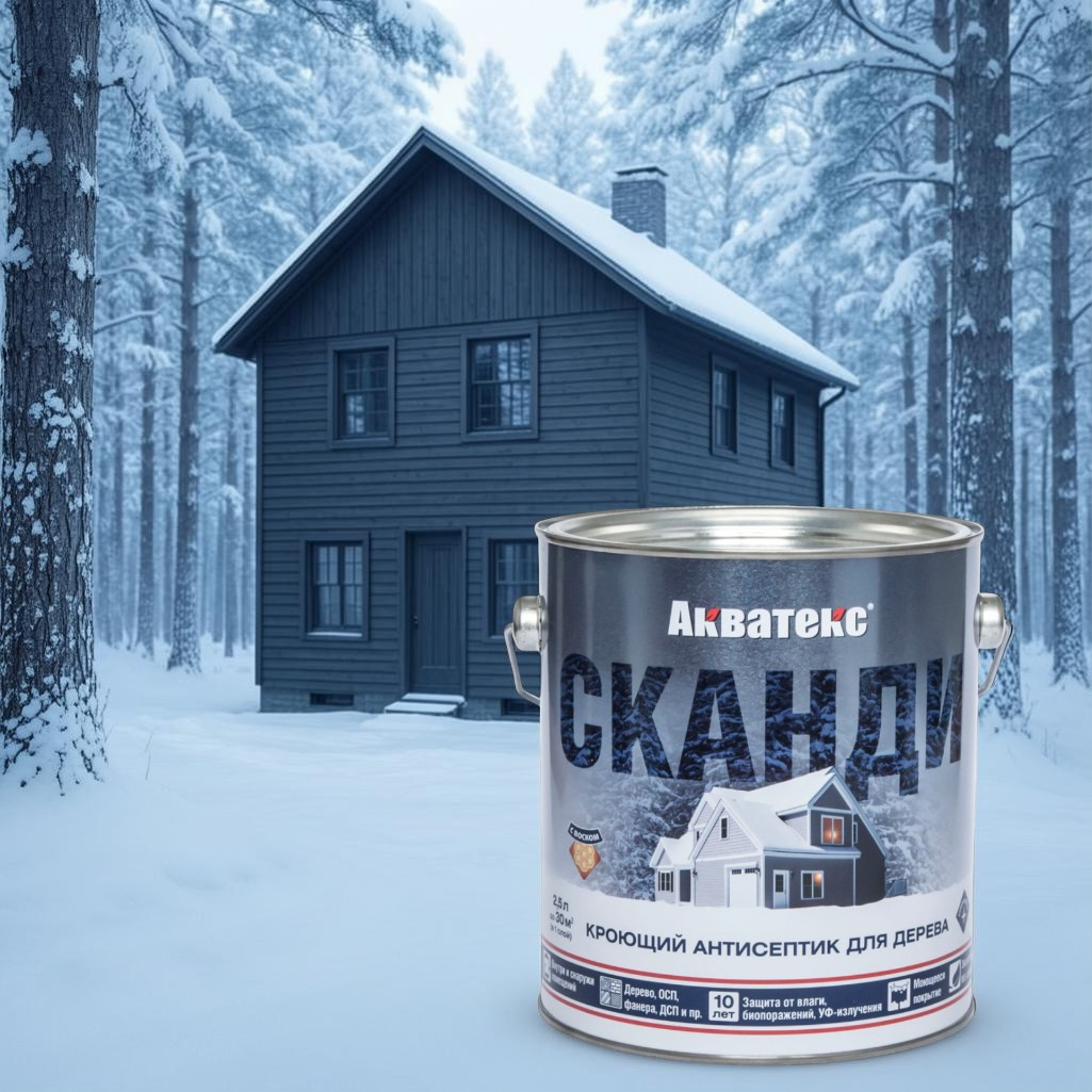 Описание антисептика Акватекс Сканди кроющий по дереву графит 2.5 л