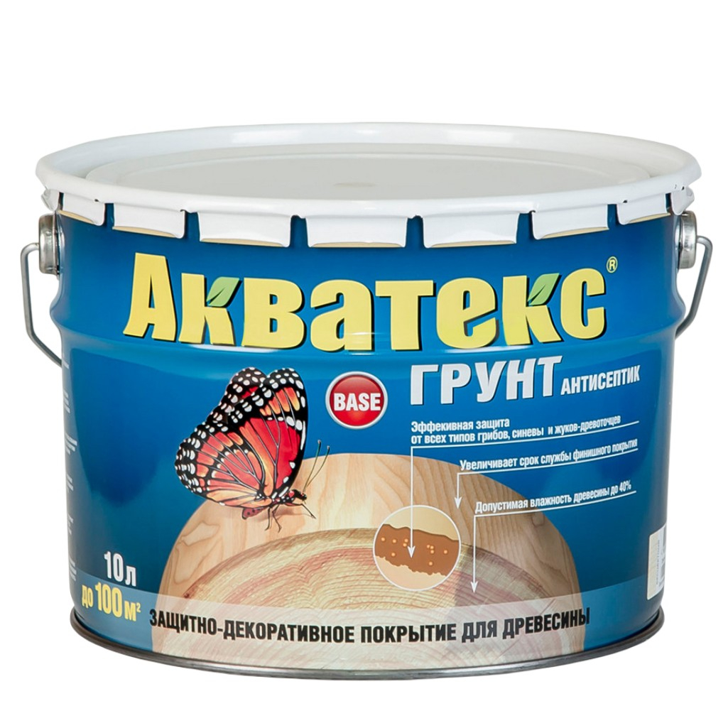 Акватекс грунт-антисептик идеально подходит для применения как внутри, так и снаружи помещений. Он может наноситься на новые или старые (неокрашенные или очищенные от старого покрытия) деревянные основания, а также на материалы на основе древесины, такие как ДВП, ДСП, фанера, OSB, MDF и клееный брус. Прогнозируемый срок службы в качестве самостоятельного покрытия составляет 3-5 лет под навесом и до 1 года в условиях открытой атмосферы. Внутри помещений покрытие сохраняет свои свойства до 10 лет.