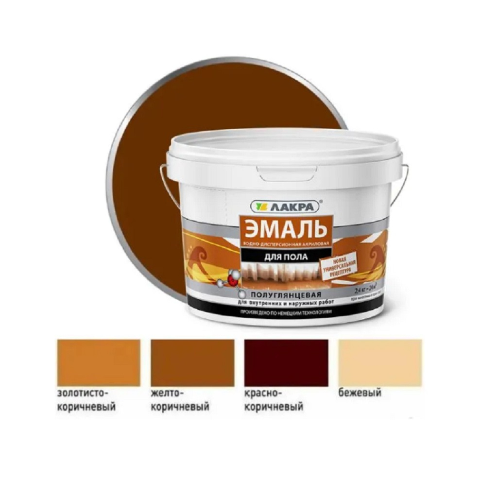 Эмаль для пола Лакра 0008102 акриловая, для внутренних и наружных работ, полуглянцевая, Золотисто-коричневый, 2.4 кг