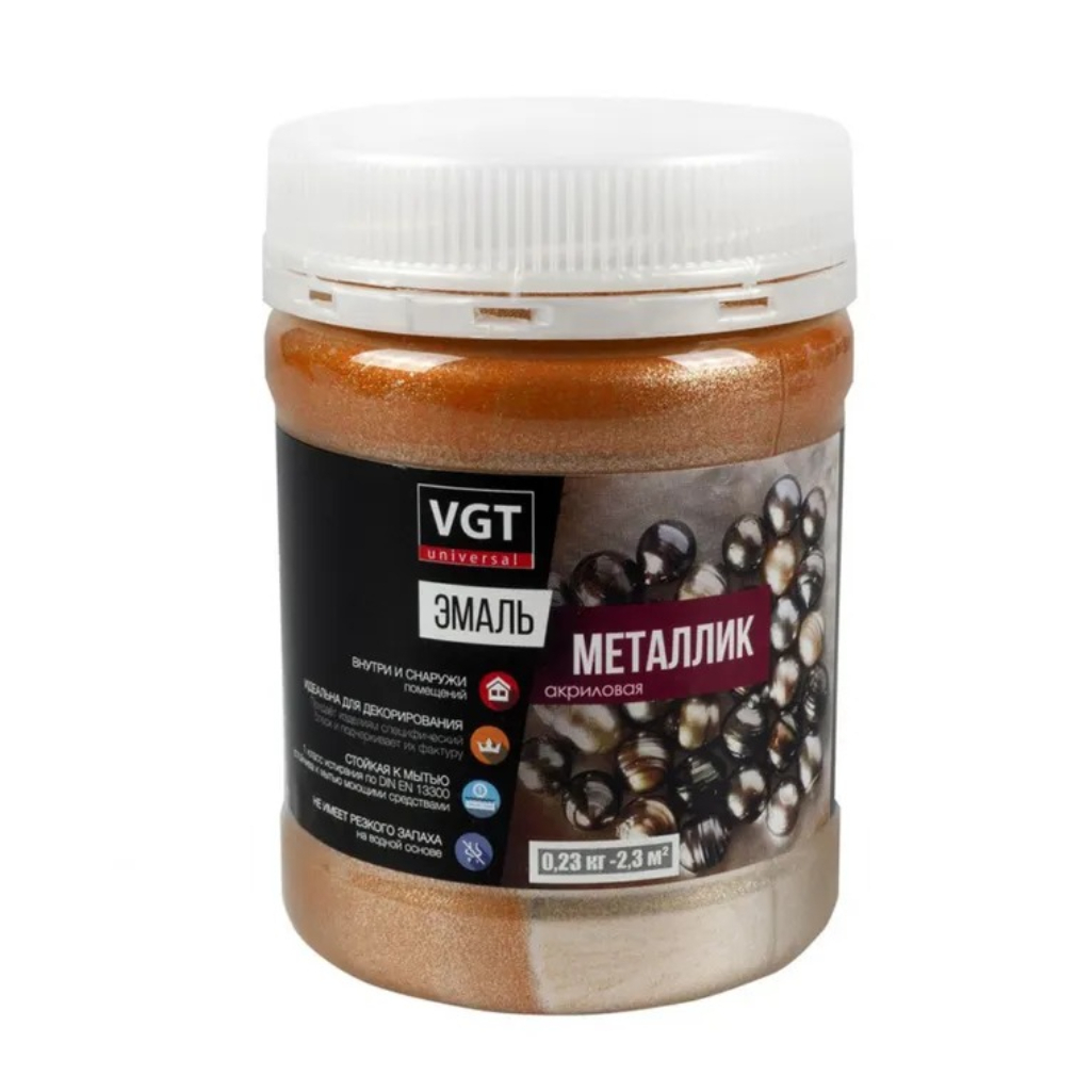 - Эмаль VGT ВД-АК-1179 универсальная, металлик, бронза 0,23кг