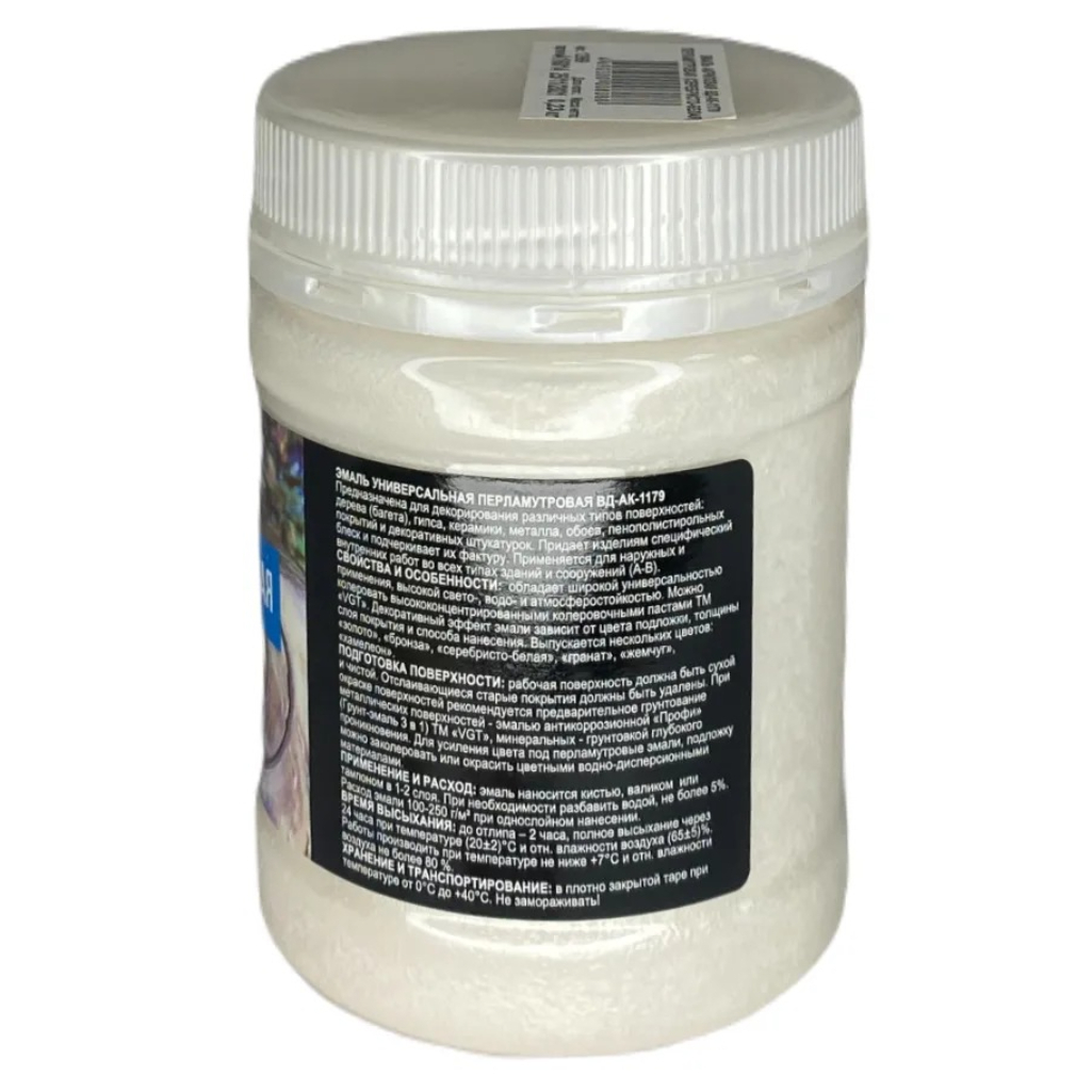 Технические характеристики эмали VGT ВД-АК-1179 Перламутровая, для декоративных работ, серебристо-белая, 0.23 кг