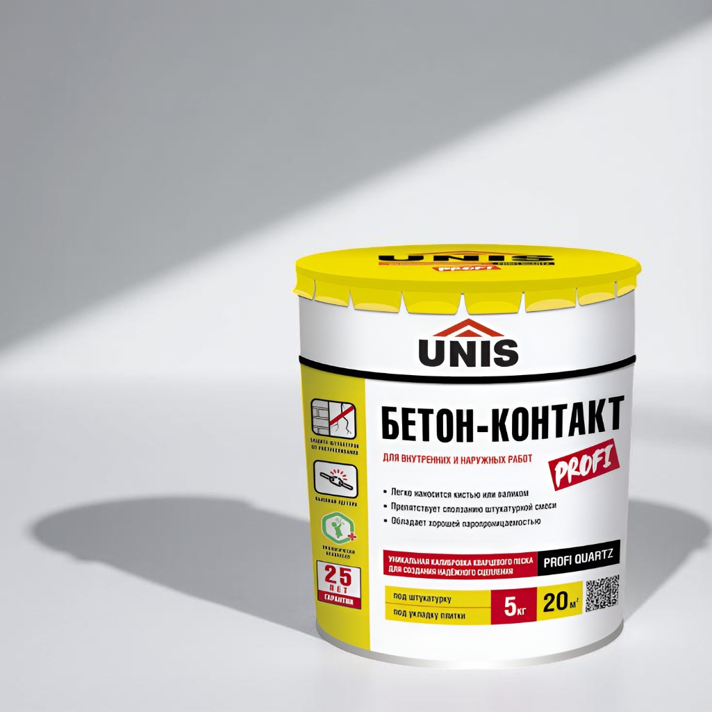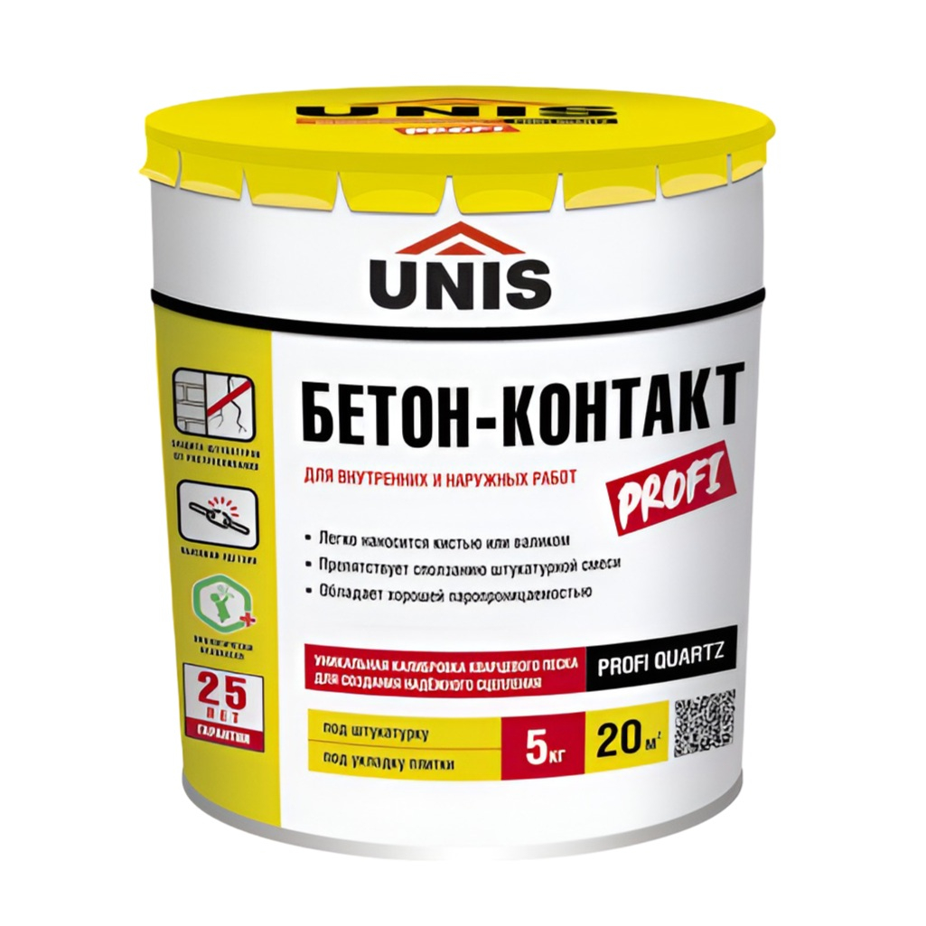 Грунт UNIS Бетон-Контакт Profi, с кварцевым наполнителем, для внутренних и наружных работ, 5 кг