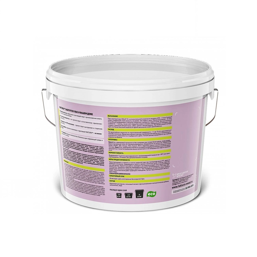 Технические характеристики краски Faktura для деревянных фасадов, с воском, бесцветная, База С, 2.7 л
