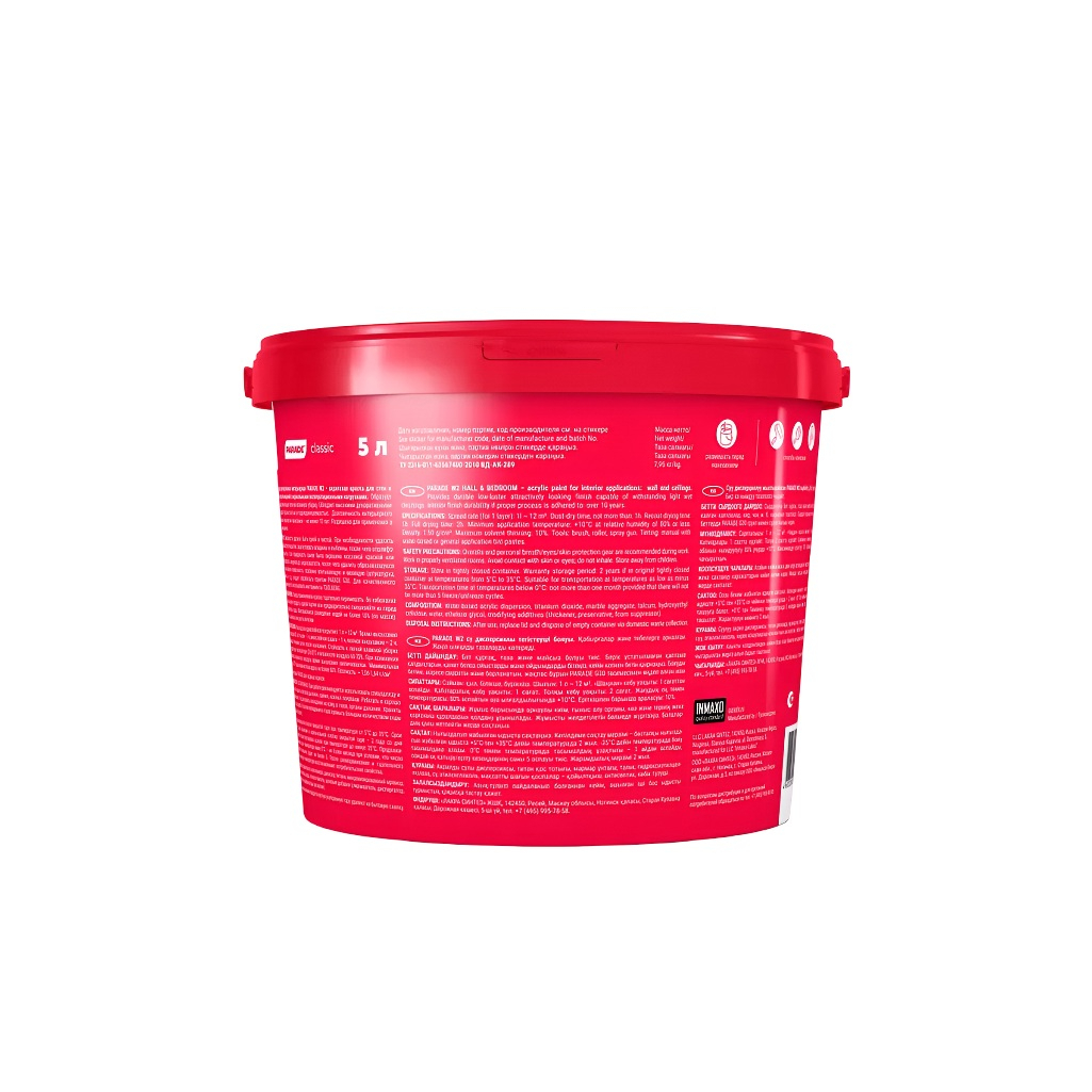 Технические характеристики краски PARADE classic Гостиная и спальня W2 супербелая матовая, 5 л