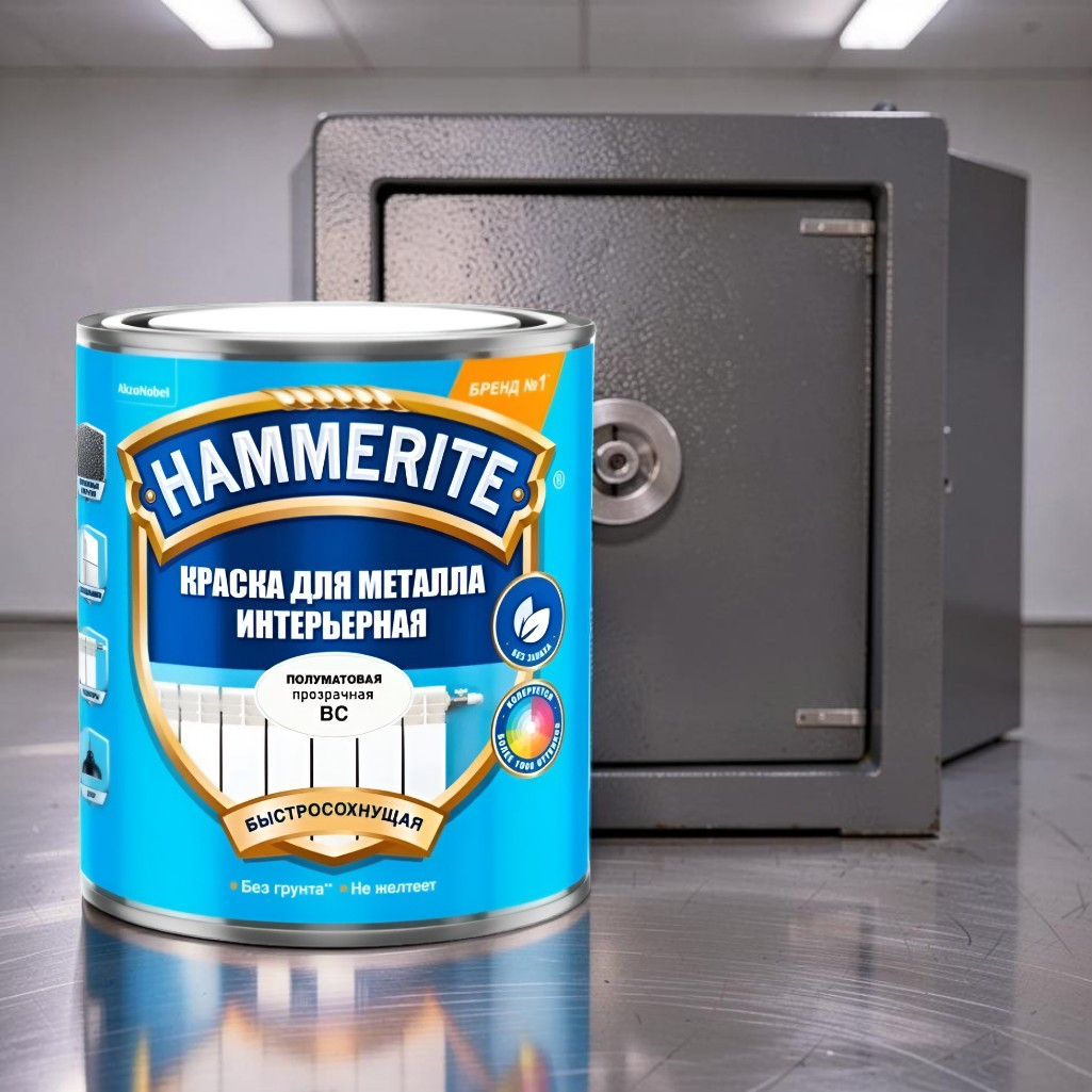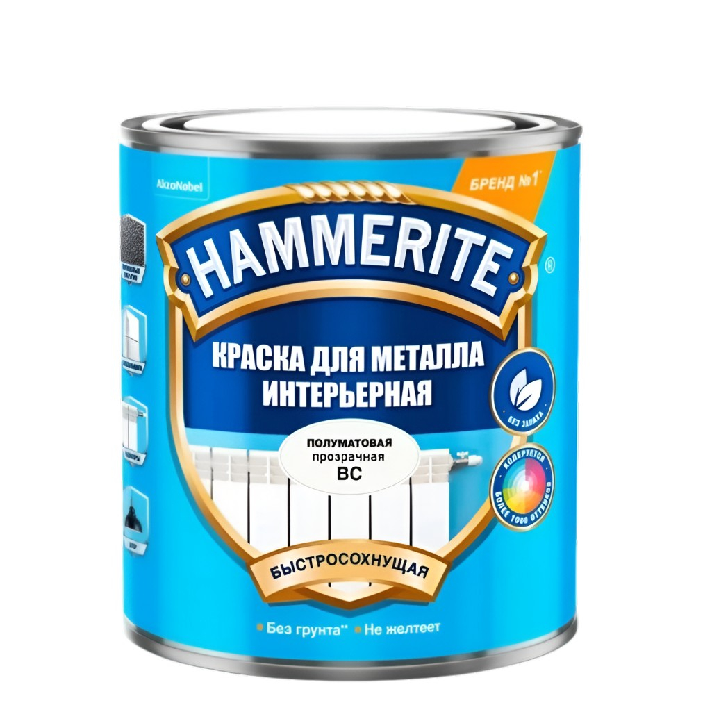 Краска для металла Hammerite интерьерная быстросохнущая, полуматовая, бесцветная, база ВС, 0.9 л