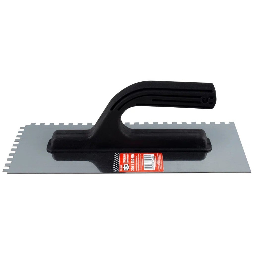 - Гладилка КЕДР зубчатая, нержавеющая сталь зуб 6мм*6мм 270мм*130мм