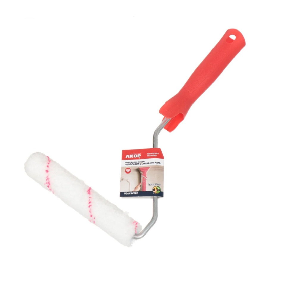- Валик-МИНИ АКОР в сборе, для работ с водными ЛКМ 150 мм L ручки 30см