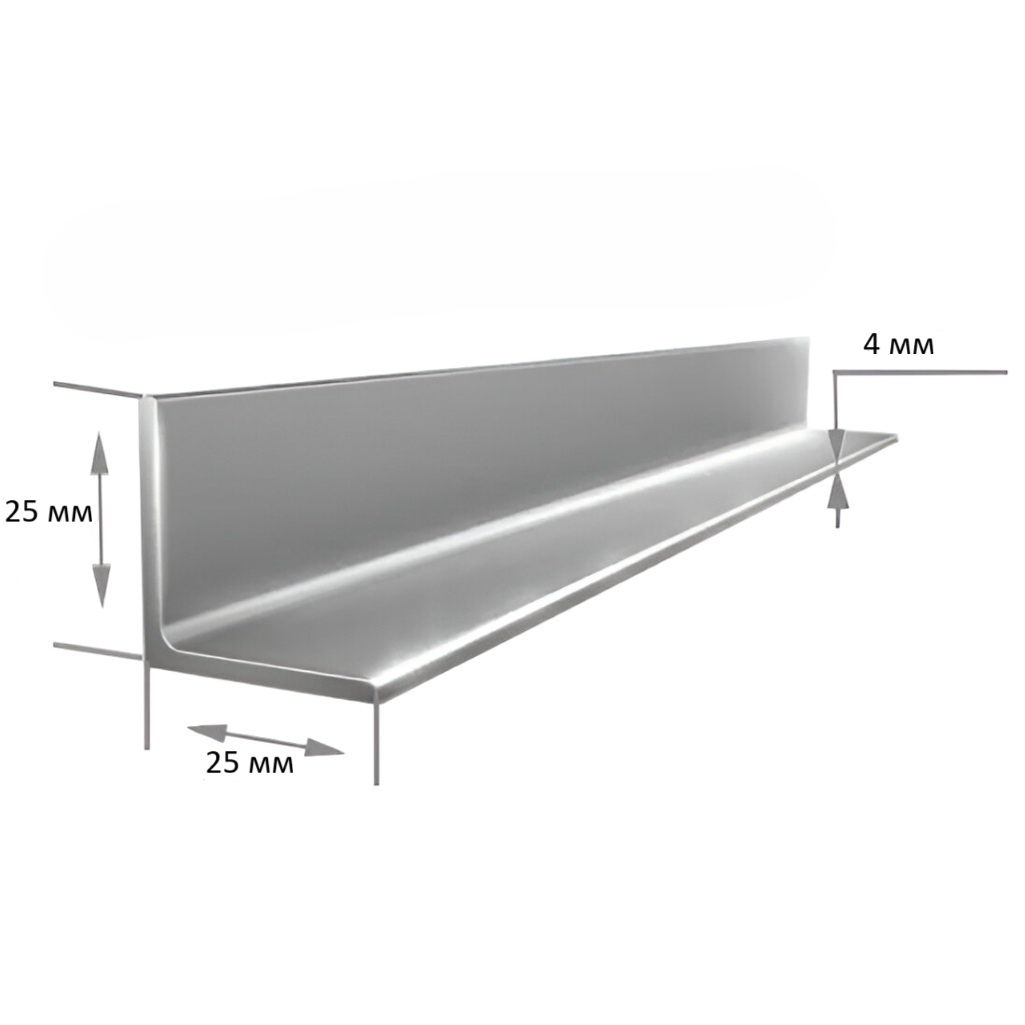 Технические характеристики уголка стального 25х25х4 мм, для монтажа каркасов, от 1 м