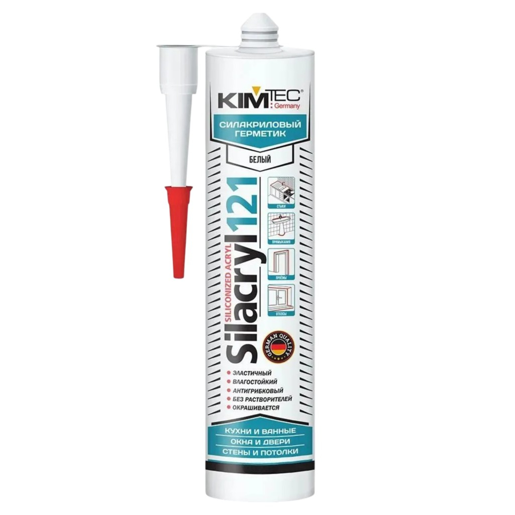 Герметик силакрил Kim Tec 121 02-04-72, для окон и дверей, белый, 280 мл это надежное решение для герметизации различных поверхностей. Белый герметик объемом 280 мл идеально подходит для использования при установке и ремонте оконных рам, дверных проемов, кабельных каналов, а также при монтаже сантехнического оборудования и систем кондиционирования.