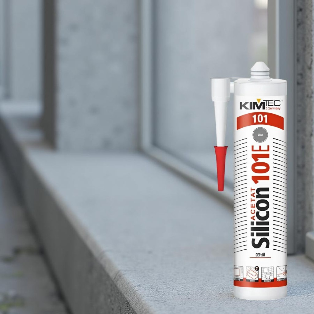 Описание герметика Kim Tec Silicon 101 Е, для внутренних и наружных работ, серого, 280 мл
