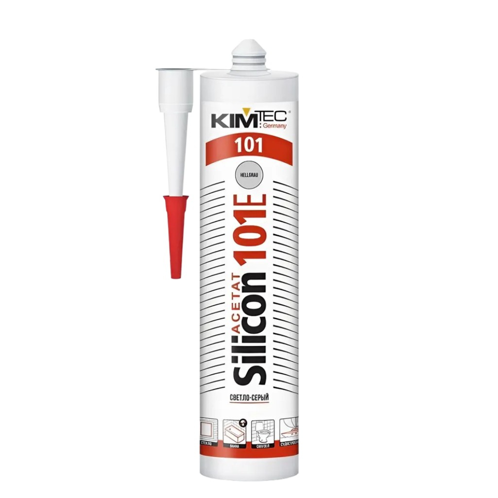 Герметик KimTec Silicon 101E, для внутренних и наружных работ, светло-серый, 280 мл идеально подходит для использования в различных строительных и ремонтных работах. Этот однокомпонентный силиконовый каучук, производимый в Германии, обладает отличными адгезионными свойствами и может применяться в качестве герметика и клея.