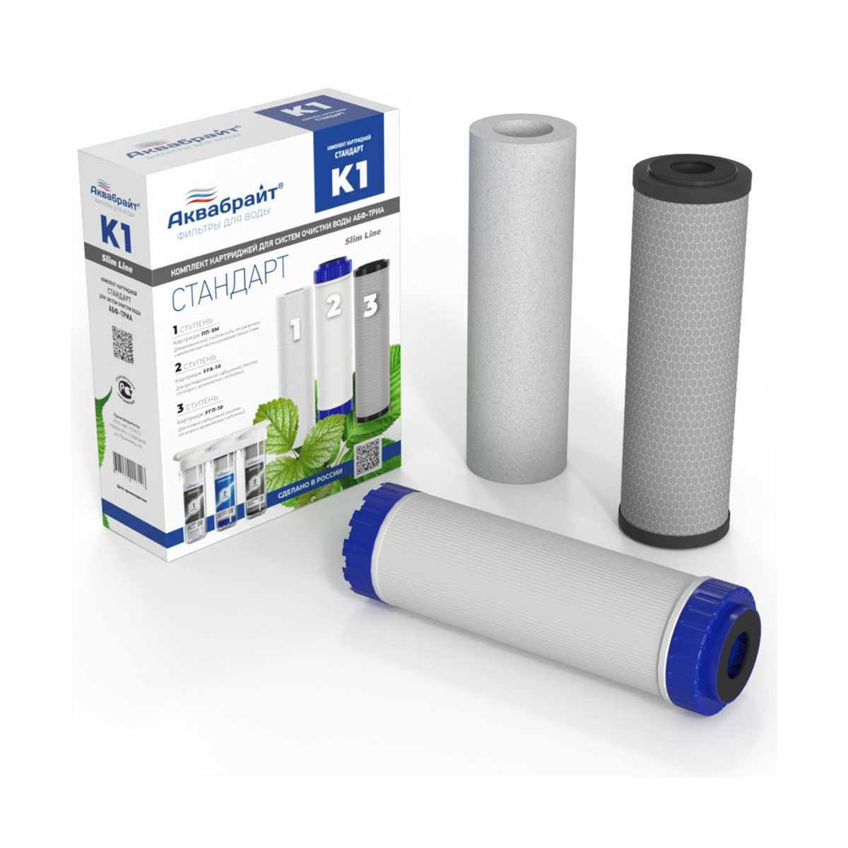 - Комплект Картриджей К-1 АКВАБРАЙТ СТАНДАРТ для очистки воды. Предназначен для установки в питьевые