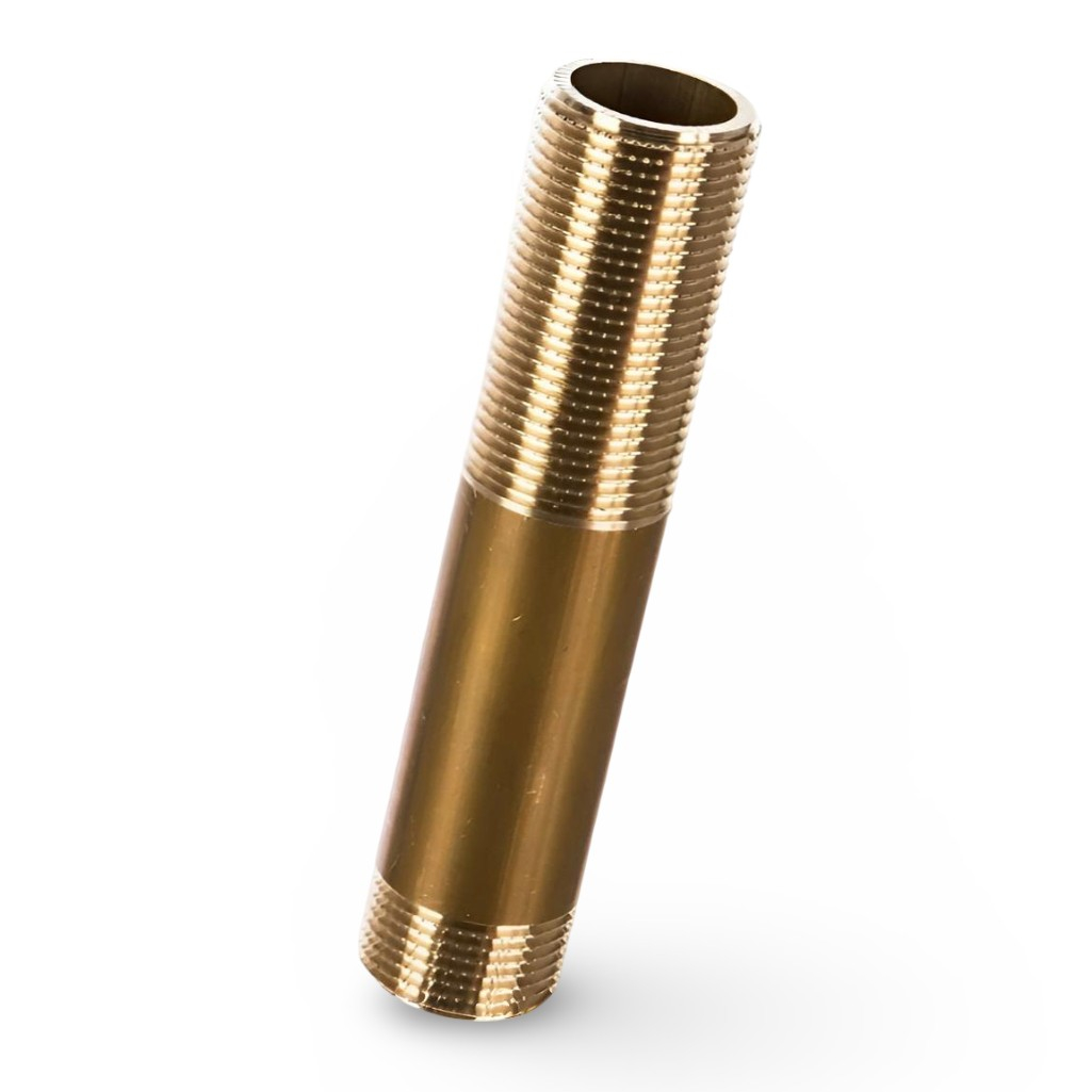 Сгон резьбовой Elsen EBF28.10-150 1"-1" НР-НР, длина 150 мм, прямой, латунь представляет собой трубку цилиндрической формы, с обеих сторон которой имеется наружная резьба различной длины. Фитинг используется вместе с накидной гайкой для создания разъемных соединений без необходимости вращения соединяемых элементов. Такая технология монтажа позволяет подключать к трубопроводу установленное и жестко зафиксированное оборудование или арматуру, обеспечивая надежное и герметичное соединение.