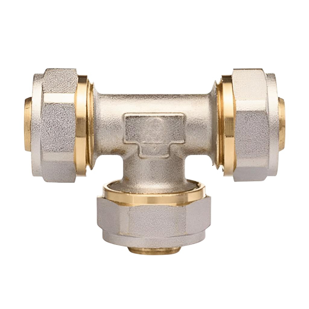 Тройник обжимной 20х20х20 мм, ц/ц/ц, латунь, для металлопластиковых труб
