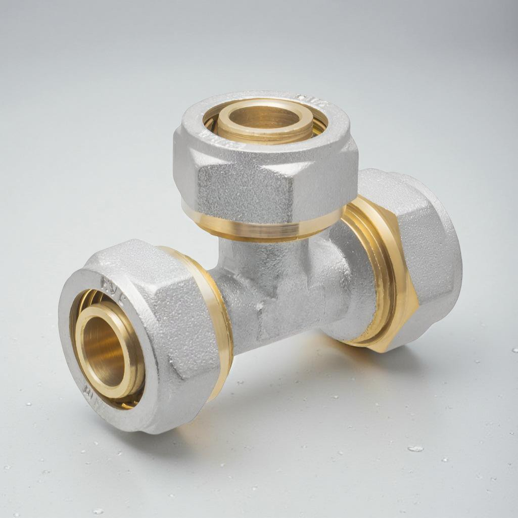 Описание тройника обжимного 20х20х20 мм, ц/ц/ц, латунь, для металлопластиковых труб