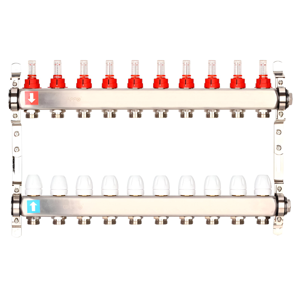Коллектор регулируемый Gappo G424.10 с расходомерами, 10 выходов, нержавеющая сталь