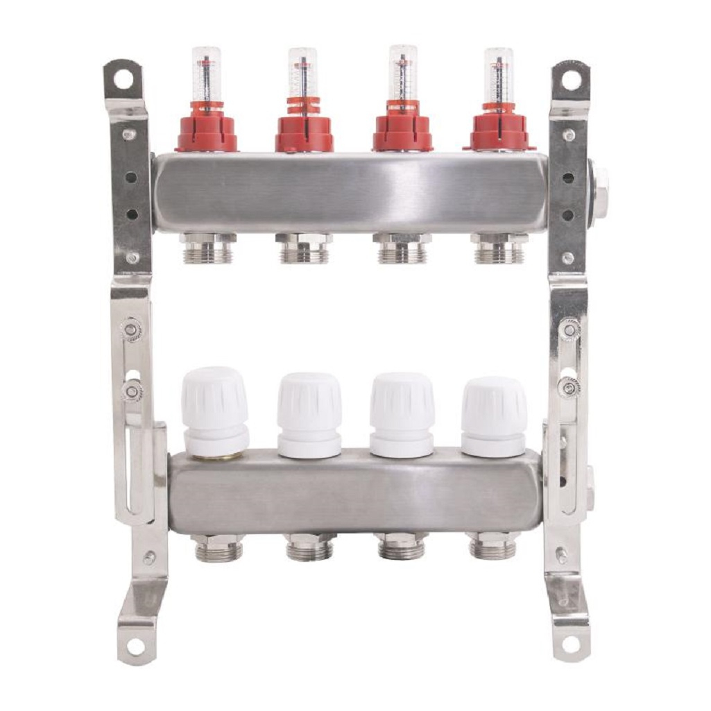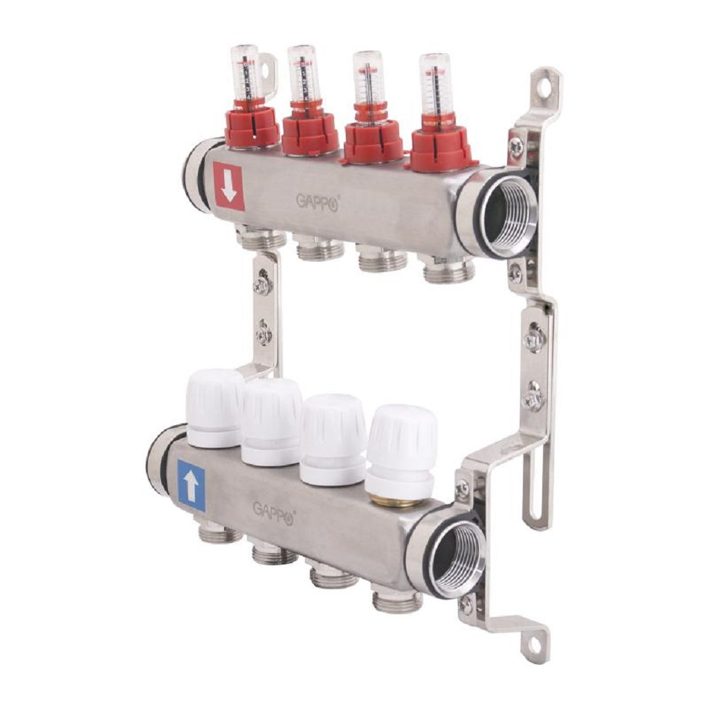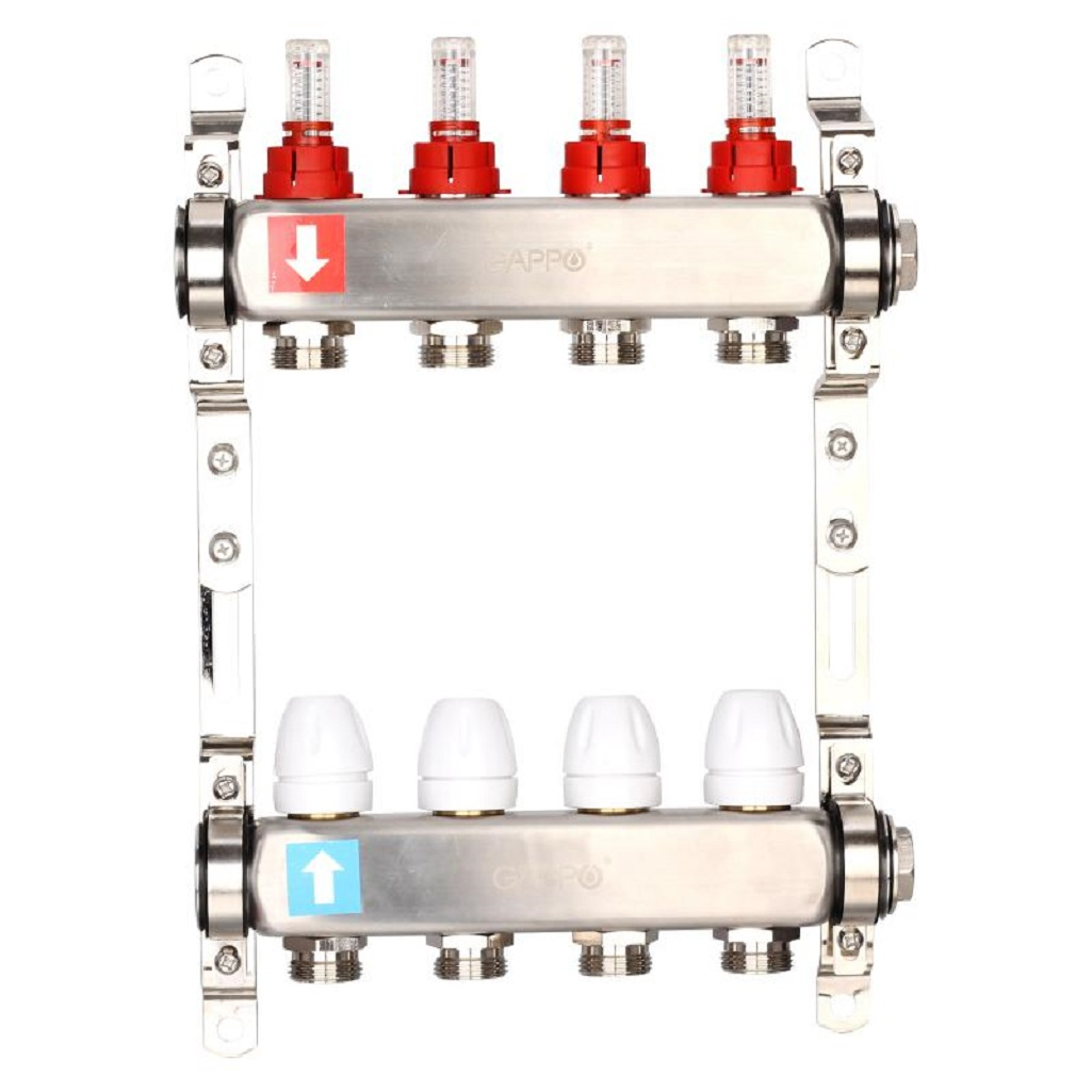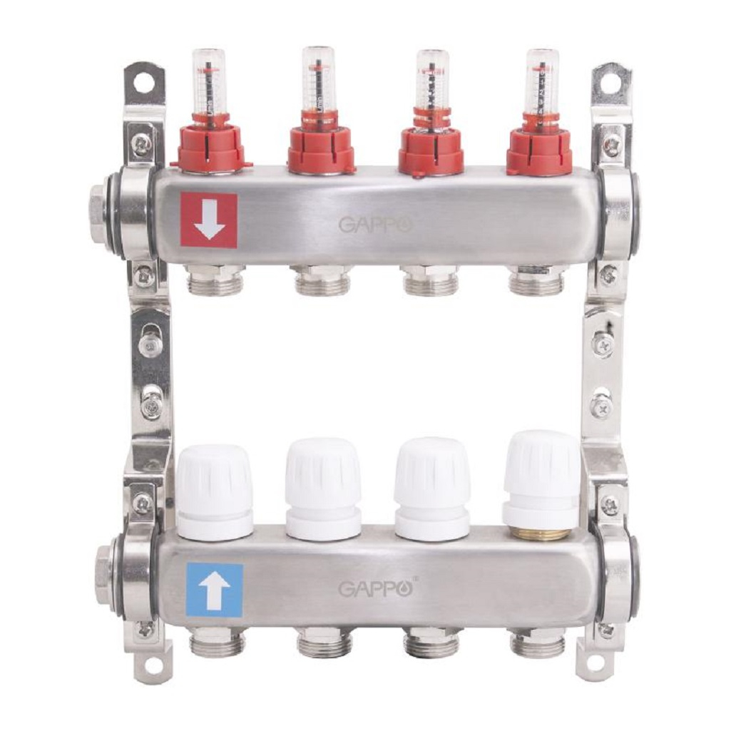 Коллектор регулируемый Gappo G424.4 с расходомерами, 4 выхода, нержавеющая сталь