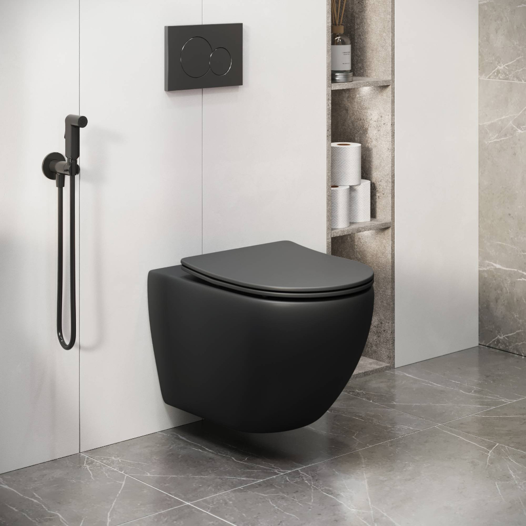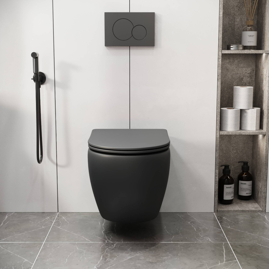 - Унитаз Grossman GR-4411B (560х360х350) Чёрный,подвесной,безободковый с тонкой крышкой