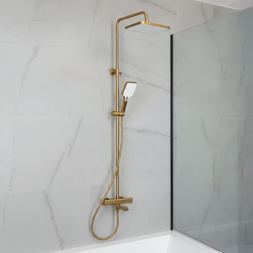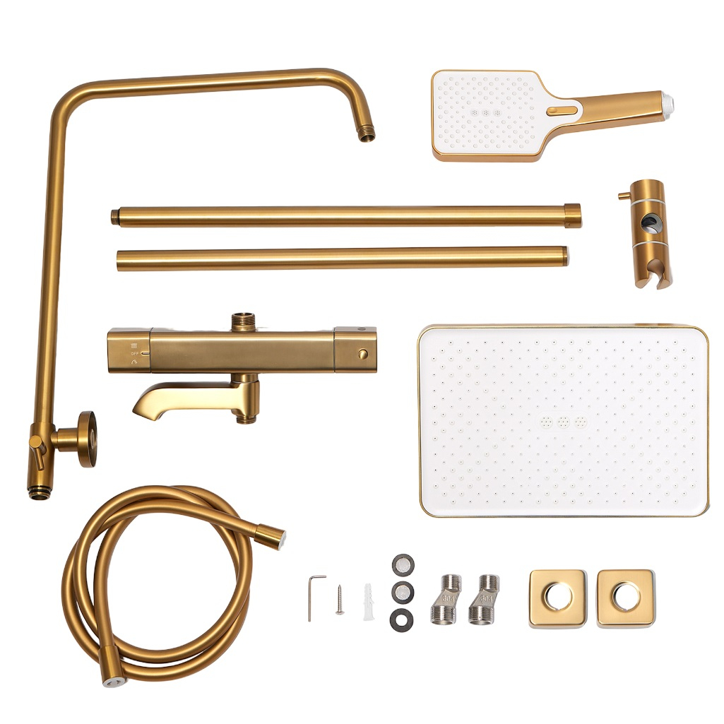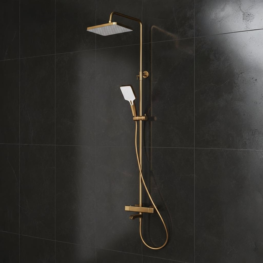 - Душевая стойка с термостатом и тропическим душем AETHERPRIDE A2491-3 (Сатин золотой)