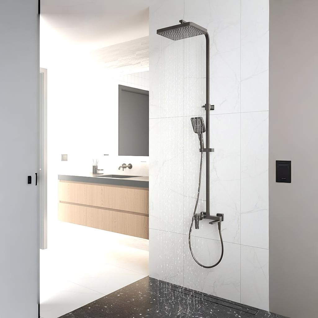 Душевая система AETHERPRIDE A2407-9 оружейная сталь, тропический душ - это комплексная система, которая подходит как для установки над ванной, так и для использования в душевой кабине. Душевая система обеспечивает максимальный комфорт во время водных процедур, создавая приятные ощущения и придавая ванной комнате современный стиль и функциональность. В комплект входят тропический душ, кран и душевая стойка. Душ имеет несколько режимов работы, что позволяет выбрать наиболее подходящий вариант индивидуально. Излив удобен в использовании и практичен, а его цвет подчеркивает стильный и современный дизайн душевой системы. Душевая лейка, входящая в комплект, также может быть полезна в повседневных бытовых нуждах, заменяя тропический душ. Душевая система легко и надежно монтируется на стойке, обеспечивая максимальный комфорт и безопасность при эксплуатации. ерхний тропический душ размером 31×21 см создаёт ощущение мягкого дождя, окутывая тело нежным и расслабляющим потоком. Ручная лейка, оснащённая тремя режимами, позволяет выбрать подходящий вариант для любого настроения — от деликатного распыления до интенсивного массажа. Душевая система AETHERPRIDE A2407-9 - это удачное сочетание эстетики, качества и функциональности. Она станет ярким акцентом в ванной комнате и будет ежедневно радовать своего владельца комфортом и надежностью.