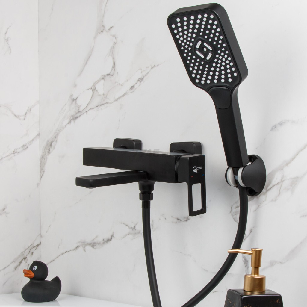 Смеситель для ванны Econoce EC0813BL картридж D35-A, с душевым гарнитуром, однорычажный, цинк, цвет черный