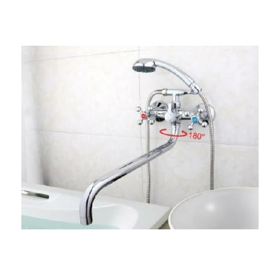 Смеситель для ванны Frap F2619-2 выполнен из латуни с хромированным покрытием в классическом стиле. Данный сплав не разрушается со временем, может использоваться в системах высокого давления, при этом абсолютно безопасен для здоровья. Управление вентильное, поворотный излив длиной 350 мм, есть аэратор. В комплект входит душевой шланг, держатель лейки, лейка с режимом моноструя. Смеситель предназначен для подачи воды в раковину и ванну, устанавливается на стену. Современная модель имеет эргономичный дизайн и отлично впишется практически в любой интерьер ванной комнаты.