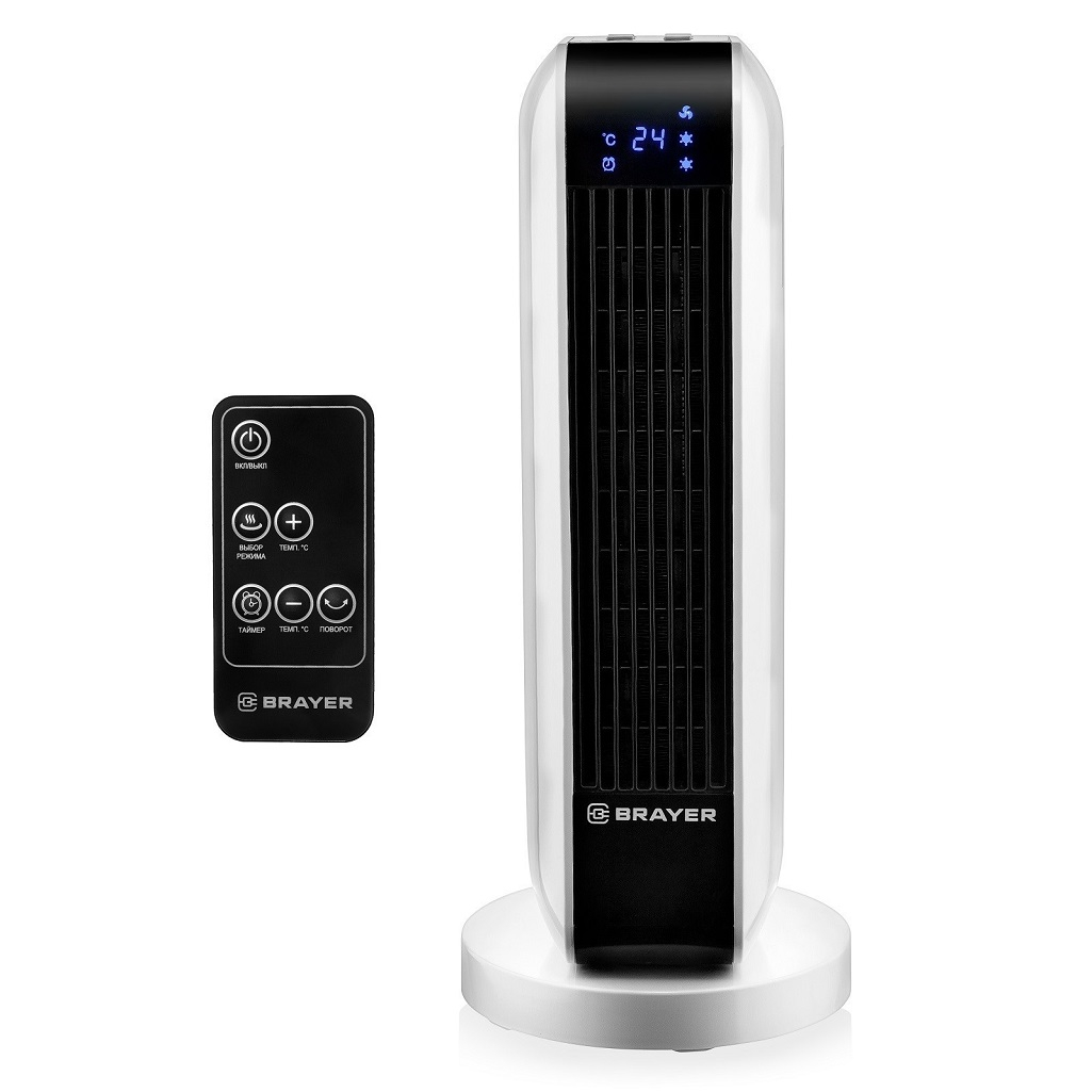 Тепловентилятор керамический Brayer 4802BR напольный 2000 Вт, белый с черным