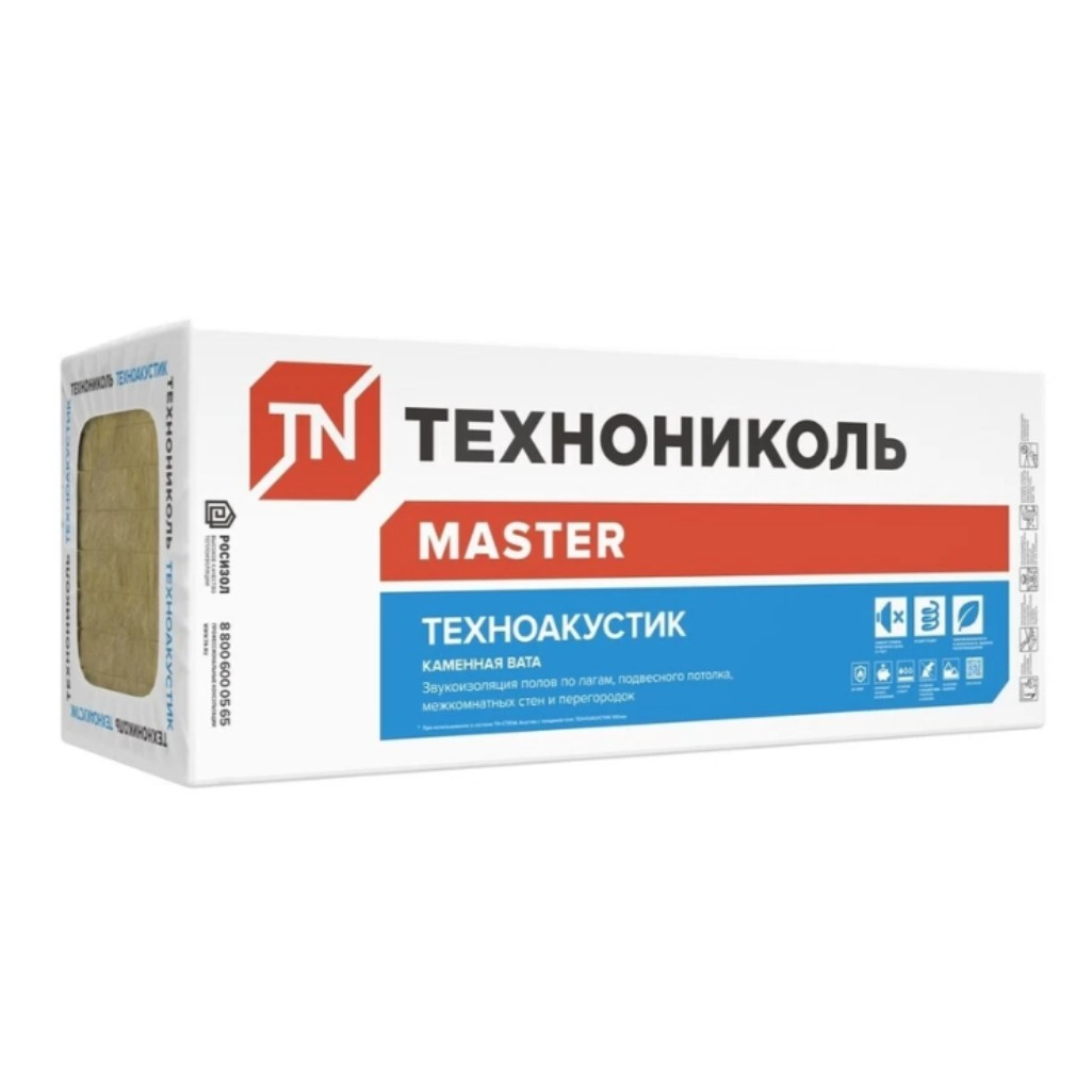 Утеплитель Технониколь Master Техноакустик для подвесных потолков, перекрытий 50х600х1200 мм, 5.76 кв.м, 8 плит в Москве