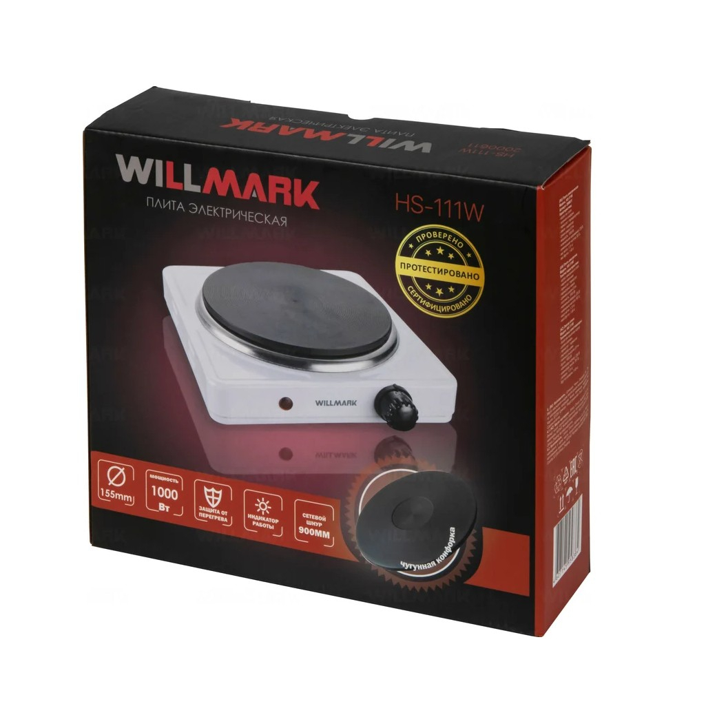 Электроплитка настольная Willmark HS-111W, 1 конфорка, цвет белый, 1 кВт