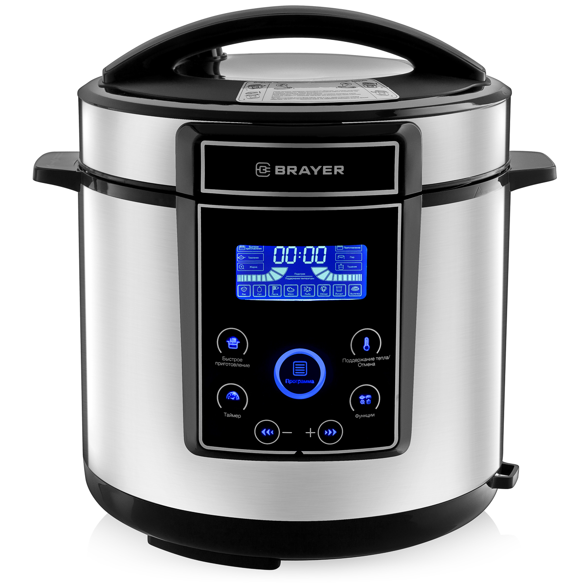 У мультиварки BRAYER BR2401 с многофункциональным LED-дисплеем установлено 12 программ приготовления: рис, суп, паста, мясо, рыба, овощи, йогурт, выпечка, тушение, пар, жарка.
