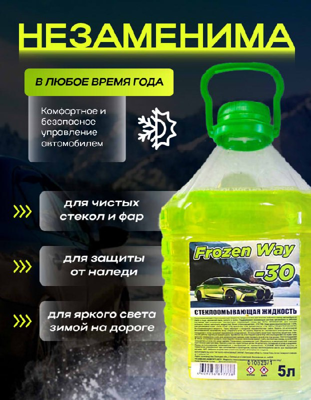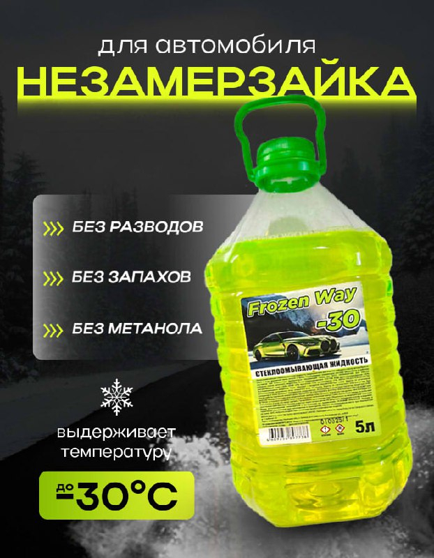 Стеклоомывающая жидкость Frozen Way -30 С, 5 литров — это эффективная очистка и защита стекол автомобиля. Предназначена для очистки и защиты от грязи стекол автомобиля: лобовых, боковых, задних. Жидкость используется в холодное время года, когда температура воздуха опускается ниже -30°C.