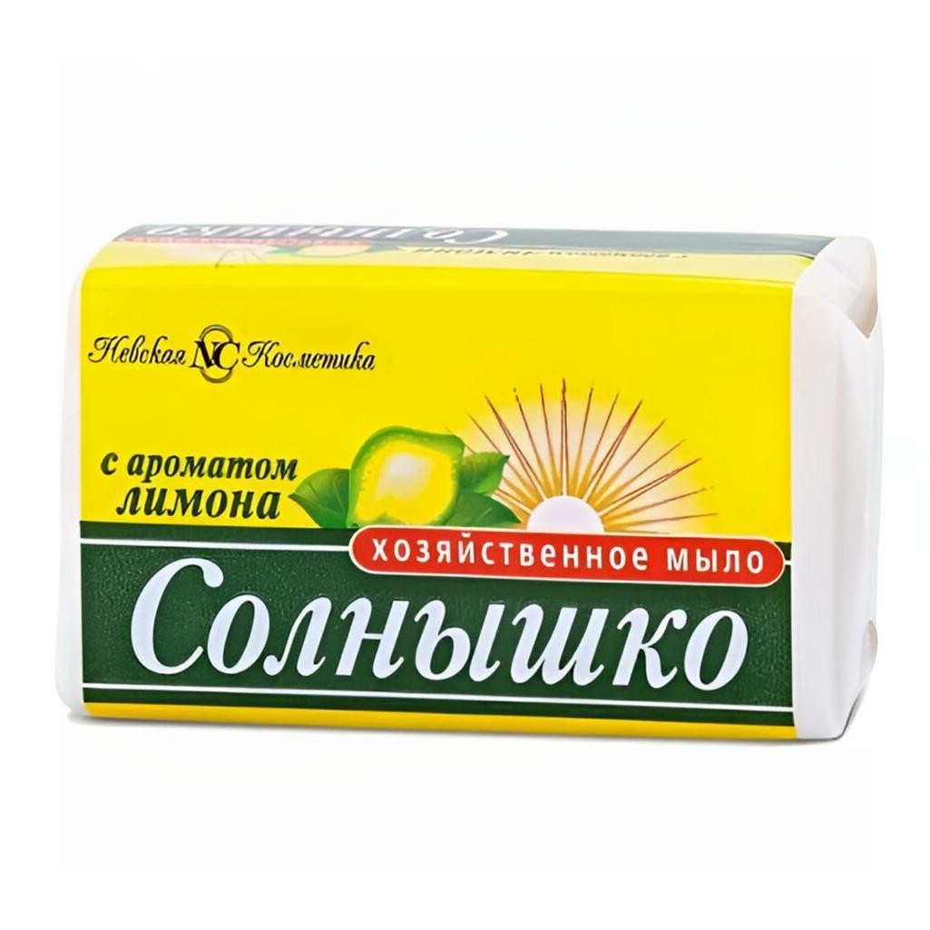 Мыло хозяйственное Солнышко с ароматом Лимона, 140 г — это натуральное моющее средство для повседневных хозяйственных нужд. Обладает высокой моющей способностью и приятным цитрусовым ароматом.