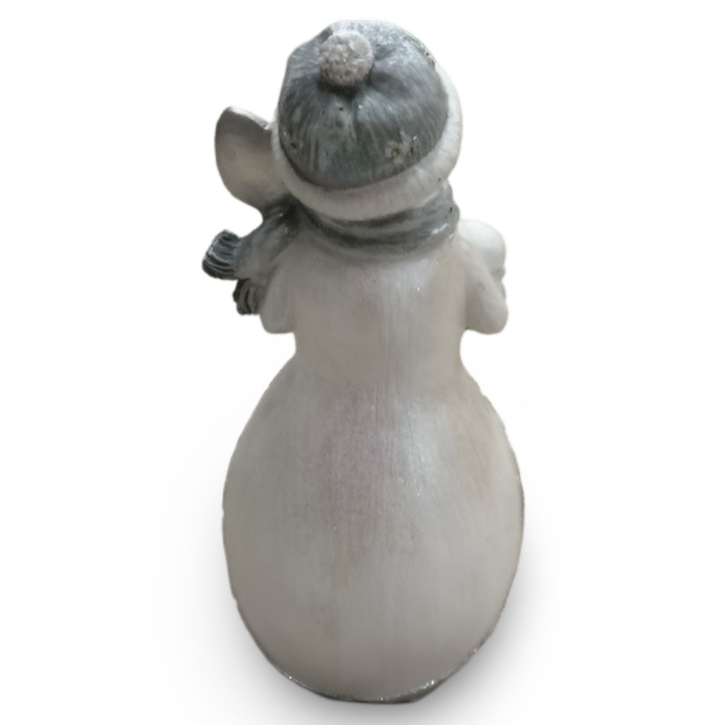 Фигура декоративная Снеговик с лопатой и снежком, новогодняя — изящное настольное новогоднее украшение в классической бело-серебристой гамме. Компактная фигурка высотой 21 см создаёт уютную праздничную атмосферу, идеально дополняя декор полок, камина или праздничного стола.