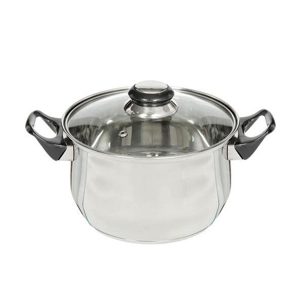 Кастрюля изготовлена из высококачественной нержавеющей стали. Равномерный прогрев дна позволяет избежать пригорания пищи. Кастрюля устойчива к механическим повреждениям и коррозии.