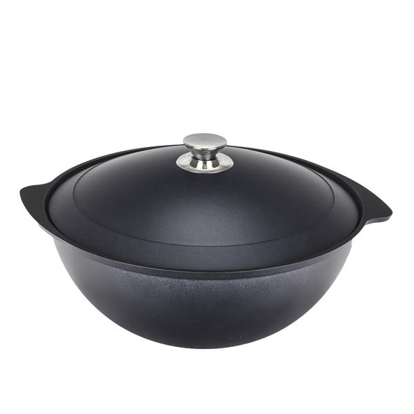 Казан для плова"Kukmara" изготовлен из литого алюминия и покрыт высококачественным антипригарным покрытием на водной основе, усиленным сверхпрочными минеральными частицами.