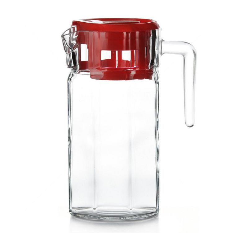 Такой кувшин прекрасно подойдет для подачи воды, сока, компота и других напитков. Кувшин плотно закрывается пластиковой крышкой.