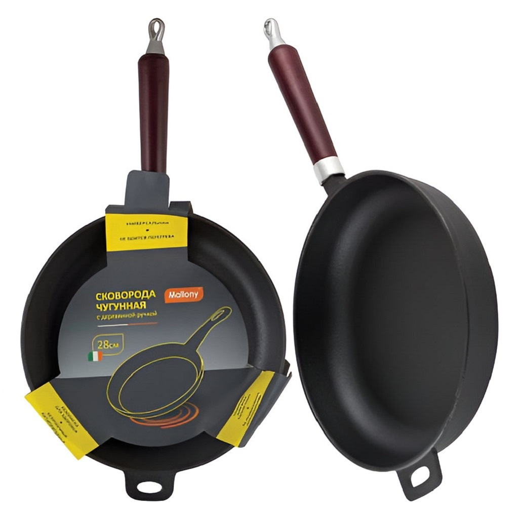 - Сковорода MALLONY чугунная с деревянной ручкой 280мм