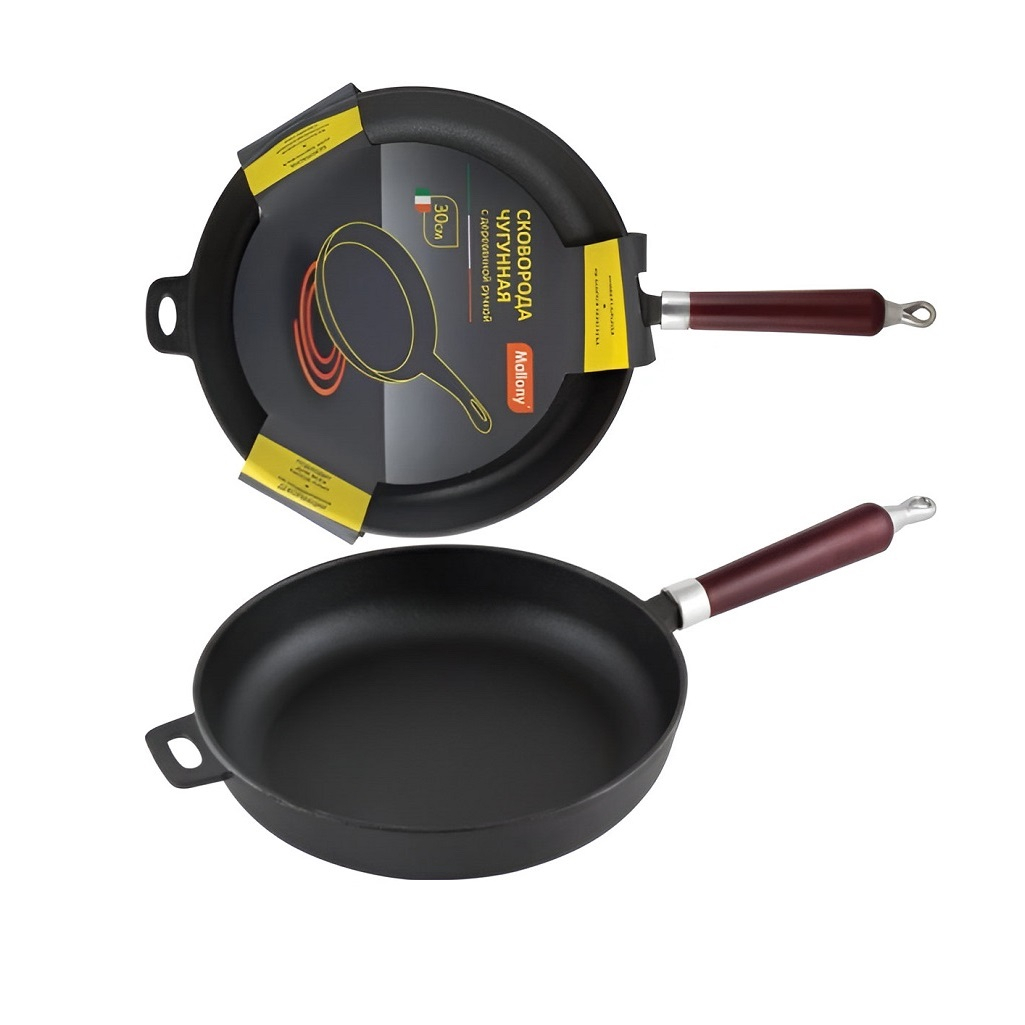 - Сковорода MALLONY чугунная с деревянной ручкой 300мм