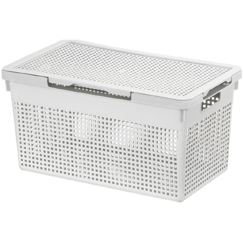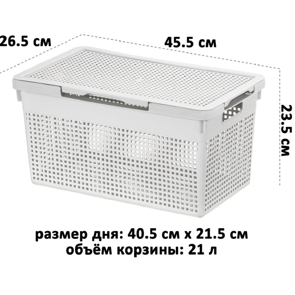 - Корзина ELCASA Лофт с крышкой узкая светло-серая 45,5*26,5*23,5см 21л