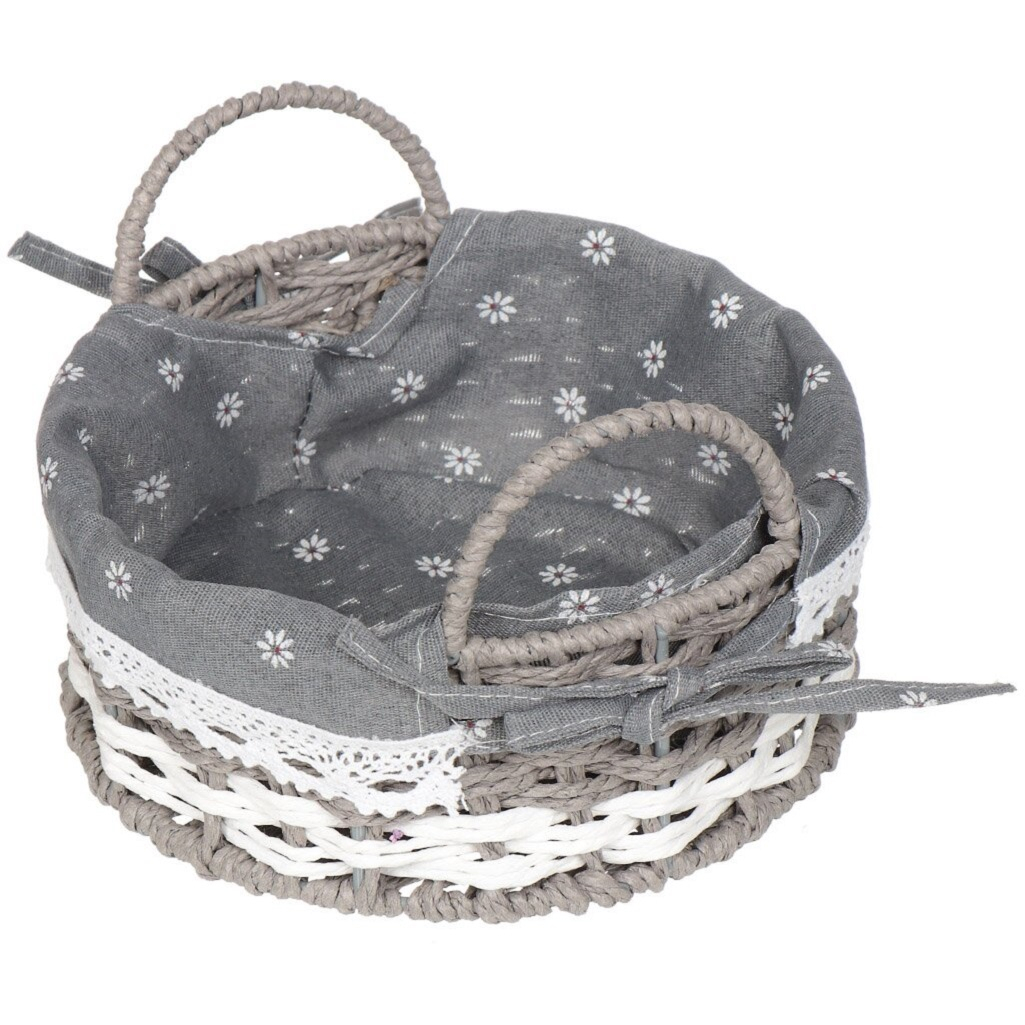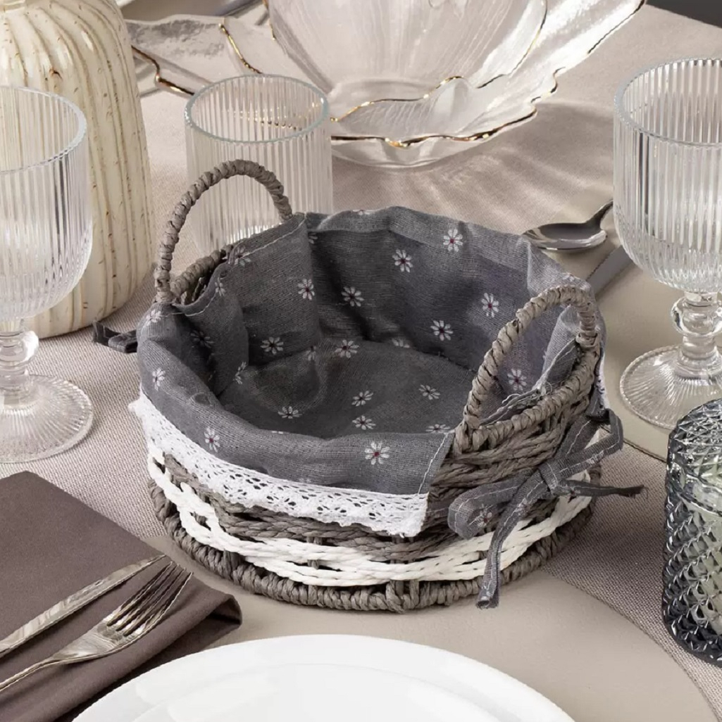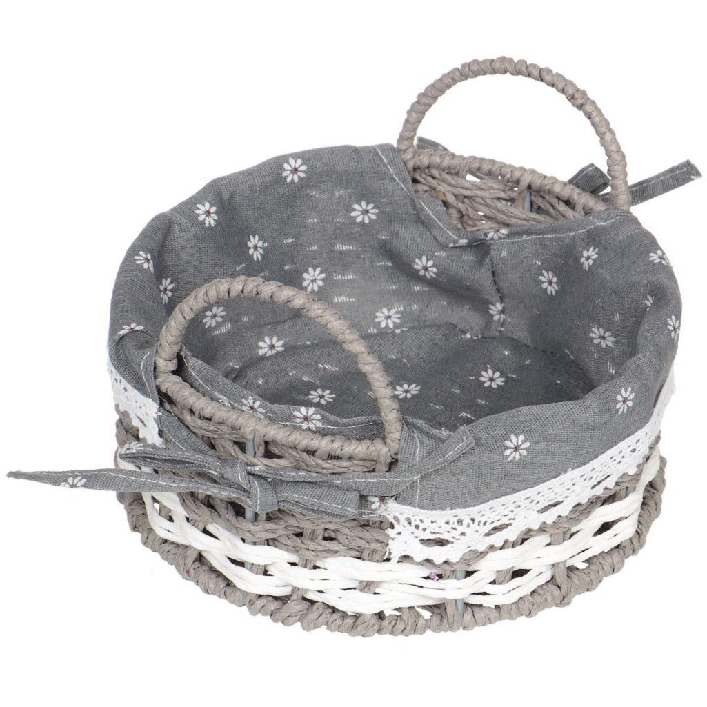 - Корзина Y028-1 плетёная с металлическим каркасом и текстильной вставкой серая 21*8,5см