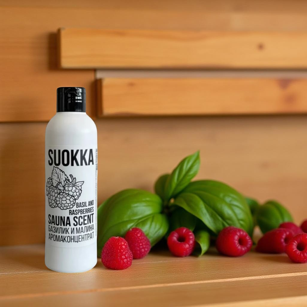 Описание аромаконцентрата Suokka Базилик и малина, для бани и сауны, для ароматерапии, объем 200 мл