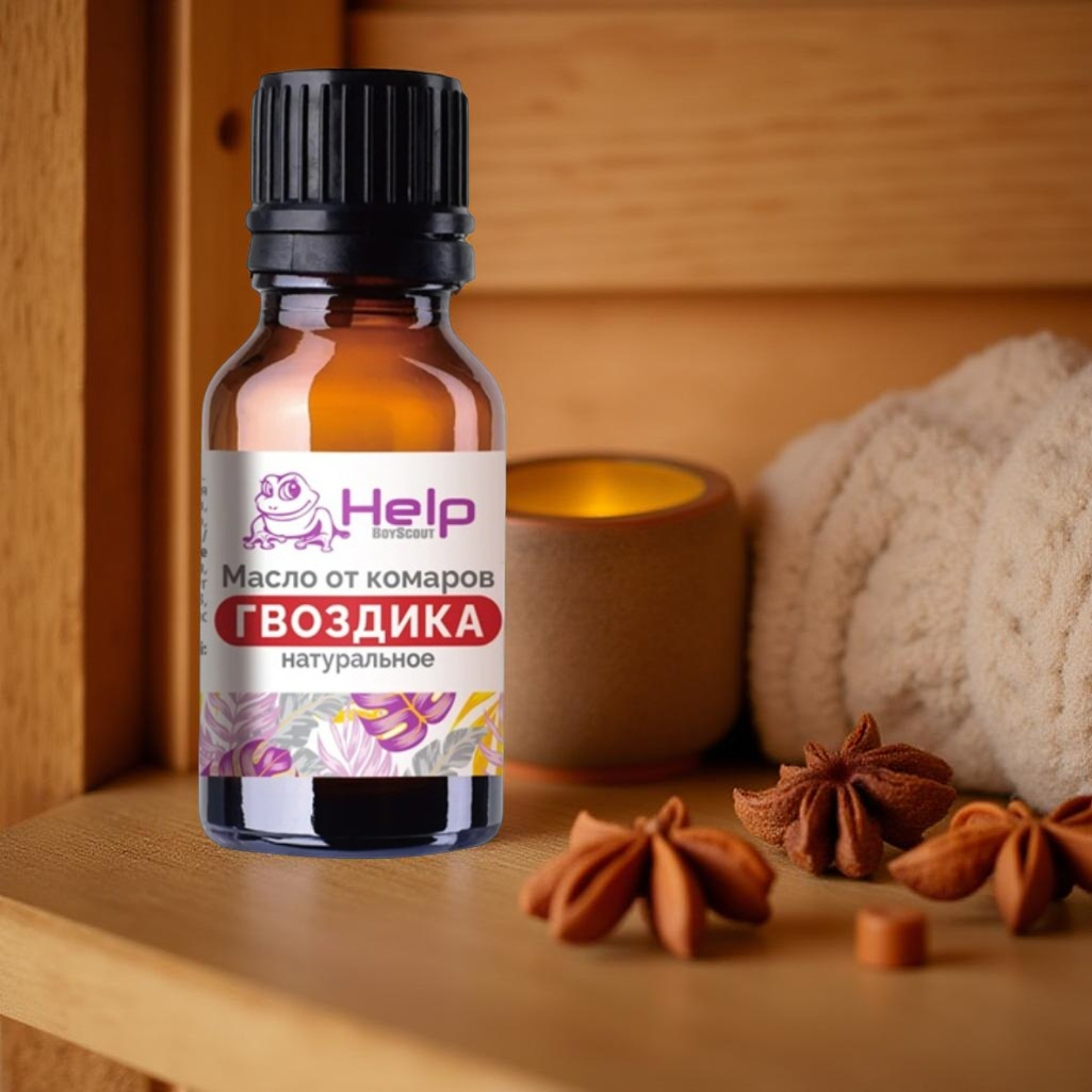 Масло эфирное Help Гвоздика, для бани и сауны, от комаров, для ароматерапии, объем 15 мл является одним из эффективных природных средств, направленных против комаров, мошек и клещей. Гвоздичное масло помогает снять зуд и покраснение после укусов. Натуральное масло Гвоздики можно использовать в аромалампе, наносить на одежду или распылять на ткани. Его также добавляют в косметические средства и ванны. Однако важно помнить, что масло не предназначено для внутреннего употребления. Возможны аллергические реакции.