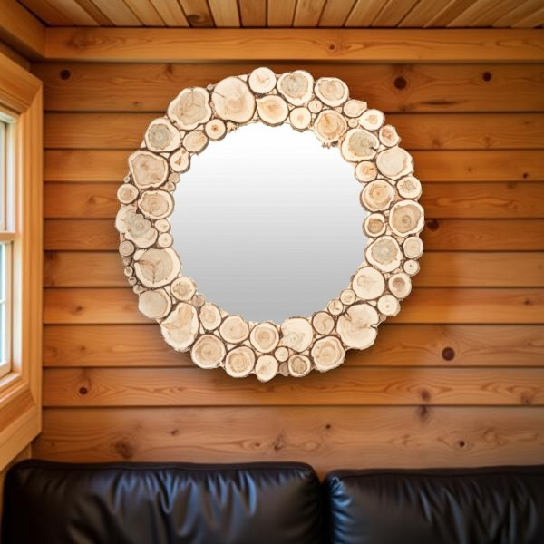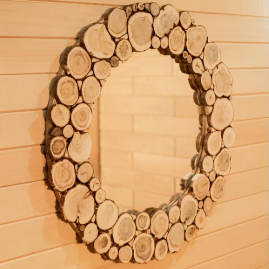 Описание зеркала, Можжевельник, для бани и сауны, диаметр 510 мм, дерево