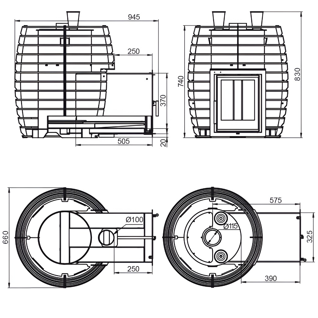 Описание печи Everest Steam Heat 24, дверца со стеклом, 24 кВт, d115 мм, до 24 куб.м