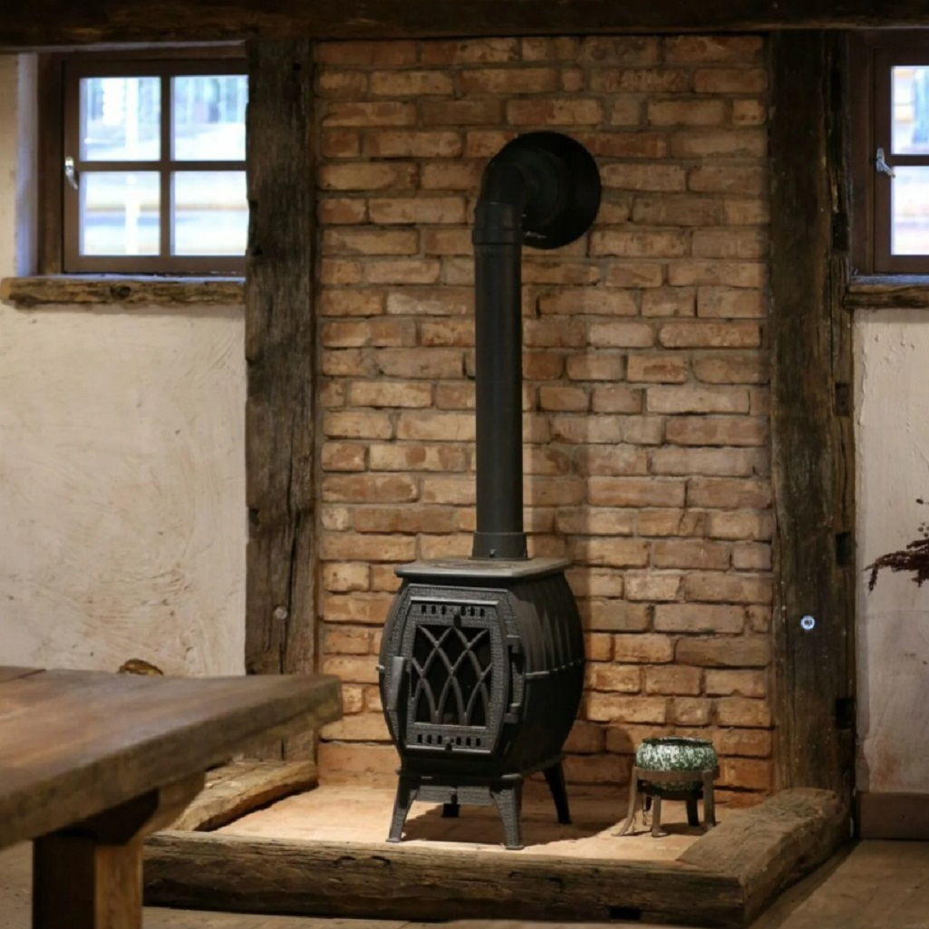 - Печь-камин отопительно-варочная "Бахта" (черная до 360 м3) d115