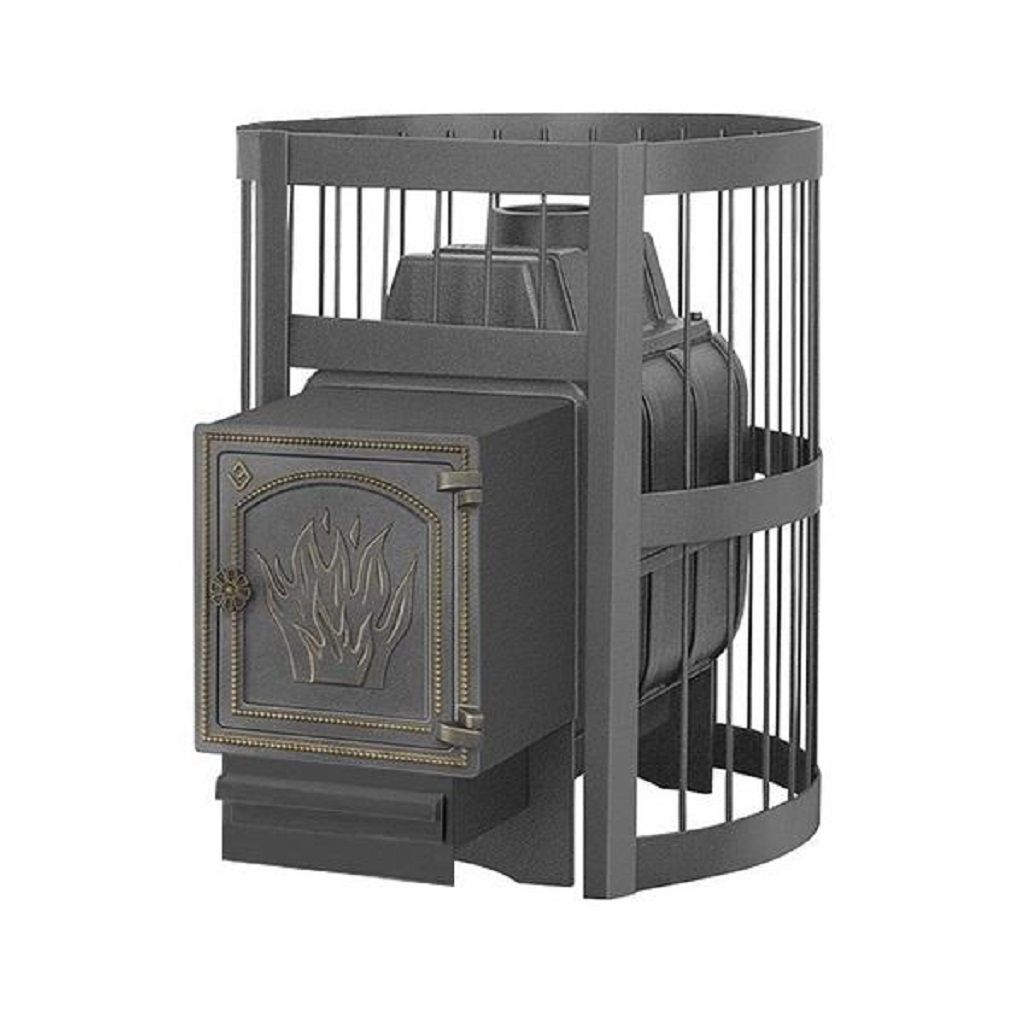 Печь для бани Везувий Легенда Стандарт 16 дверка ДТ-4, 16 кВт, d115 мм, до 18 м3 укомплектована чугунной не герметичной дверцей Везувий ДТ-4. Печь предназначена для нагрева парильного помещения объемом до 18 м³. Конвекционно-вентилируемый кожух "Стандарт" изготовлен из металлического прутка диаметром 6 мм покрашенной черной термостойкой краской. Топка печи состоит из 3-х элементов. На стыке между ними используется керамический шнур с рабочей температурой 1200 градусов. Для фиксации деталей между собой применяется болтовое соединение.