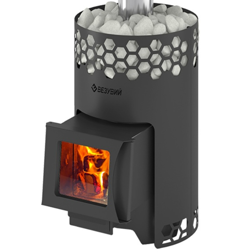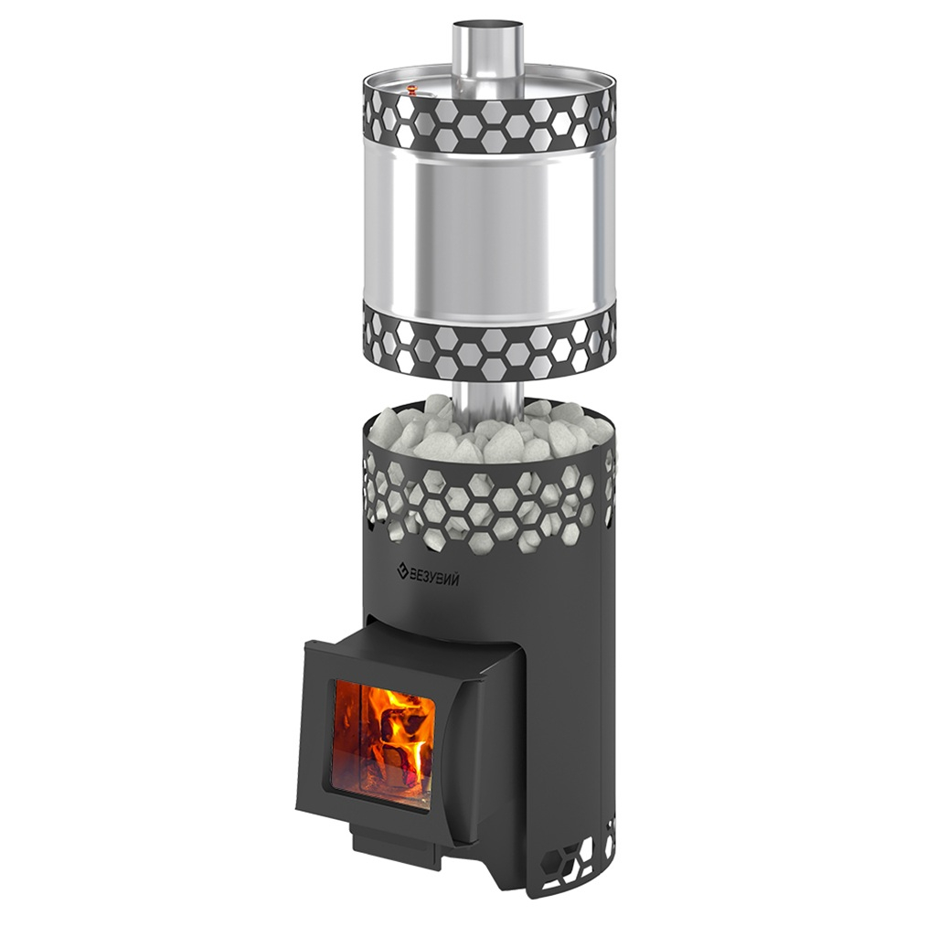 Печь для бани Везувий Пчелка С, с баком, дверца стекло, 14 кВт, d115 мм, до 14 куб.м