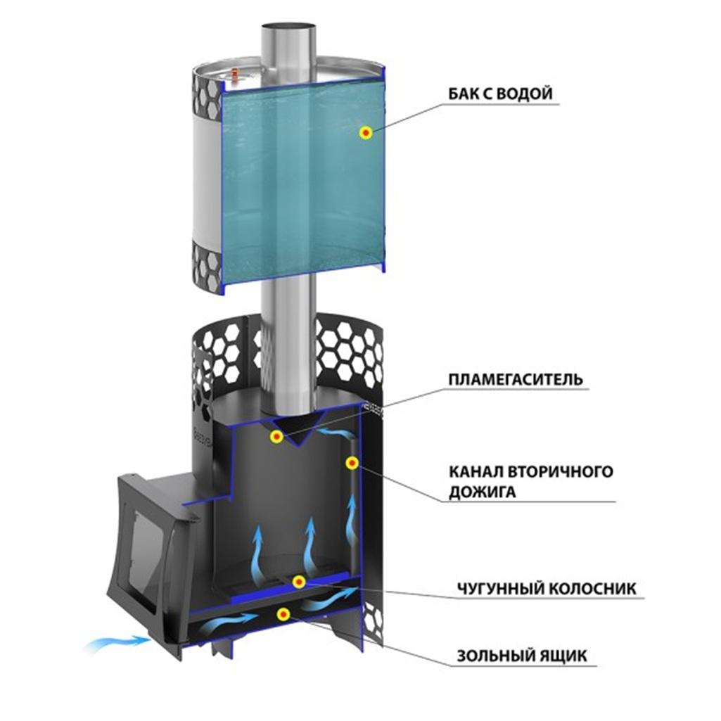 - Печь Везувий "Пчелка С" с баком (6-14м3, d115мм)