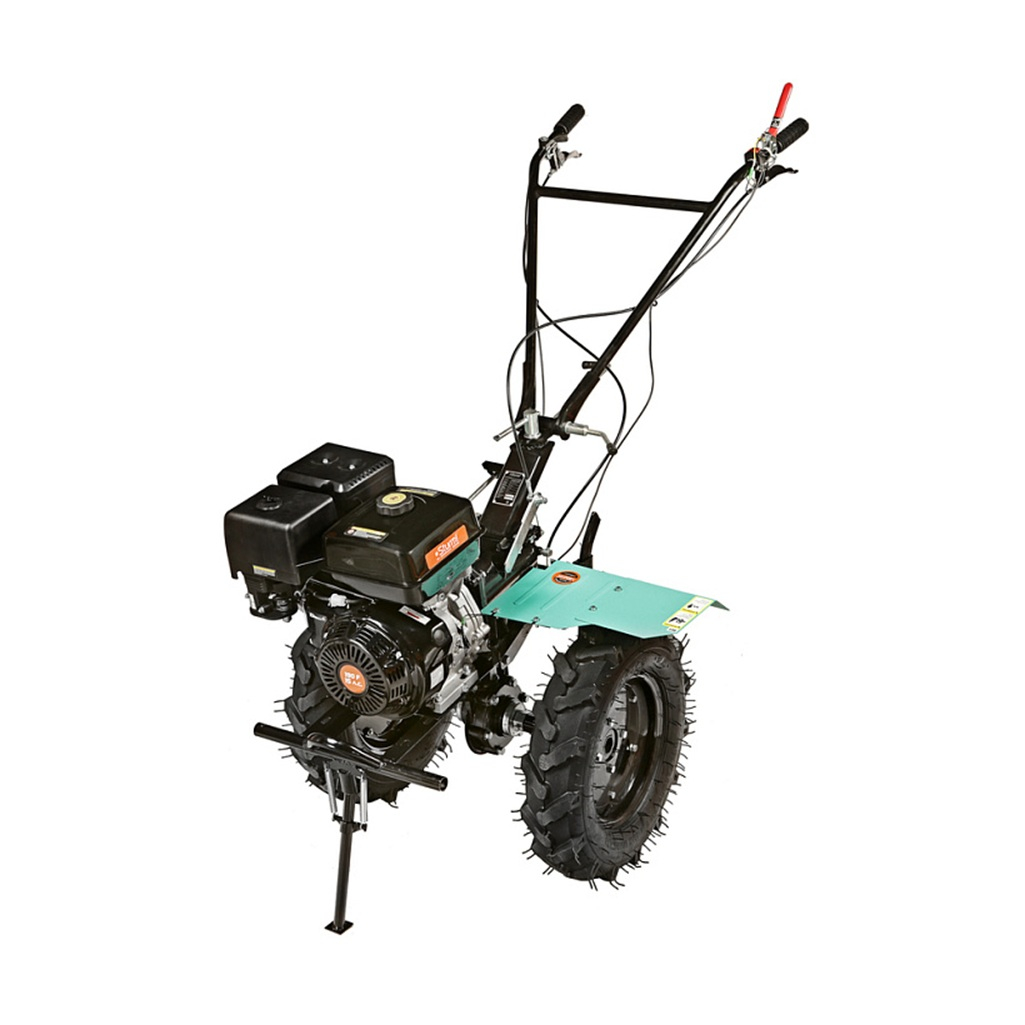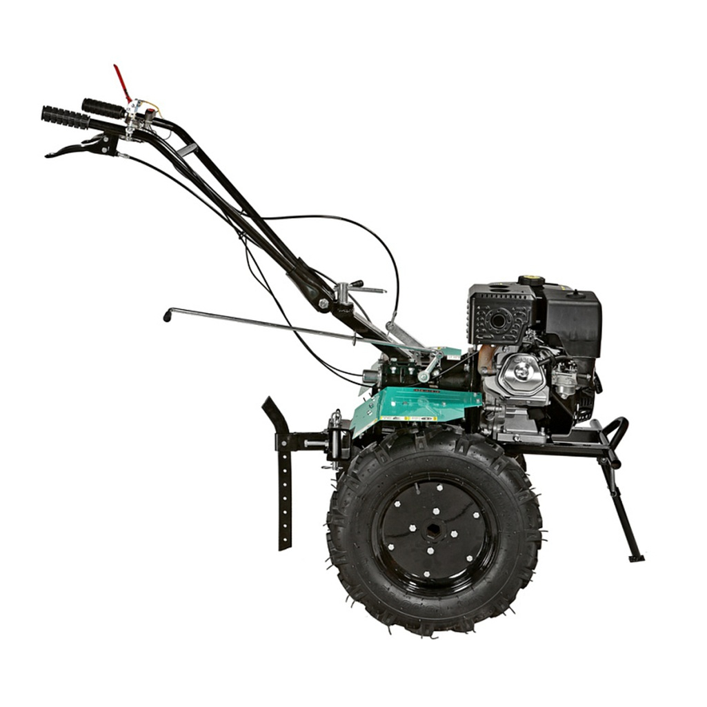 Мотоблок бензиновый Sturm GK15312GP, 4-х тактный, 15 л.с, 11.4 кВт - это агрегат тяжелого класса, предназначенный для выполнения больших объемов культивационных работ на обширных площадях. Модель данной категории способна работать в непрерывном режиме с активным и пассивным навесным оборудованием. Мотоблок оснащен мощным 4-х тактный одноцилиндровым двигателем, мощностью 15 л.с. объемом 420 см3 и многоступенчатым редуктором, которые позволяют обрабатывать, за один проход, полосу земли шириной 1 м. При использовании пневматических колес, мотоблок с легкостью управляется с прицепом. Редуктор обеспечивает агрегату 4 режима работы: 3 скорости вперед, и 1 назад. Ведущие колеса мотоблока – это пара стальных дисков с пневматическими шинами, с протектором, не допускающим пробуксовки. Запуск производится с помощью ручного стартера.