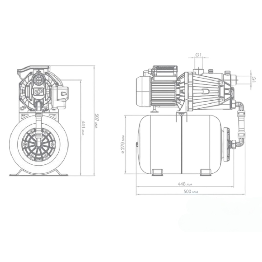 Соединительная арматура между насосом и гидроаккумулятором была заменена на шланг из сшитого полиэтилена с накидными гайками, что упрощает монтаж и замену гидроаккумулятора. Новая конструкция гидравлической части минимизирует риск образования воздушных пробок при работе. Гидроаккумулятор защищает насос от частых включений, увеличивая его срок службы, и поддерживает давление в системе, обеспечивая непрерывное водоснабжение при отключении насоса. Он также предотвращает гидроудары. Встроенная тепловая защита предотвращает перегрев двигателя. Термопротектор в обмотках статора отключает электродвигатель при повышении температуры.